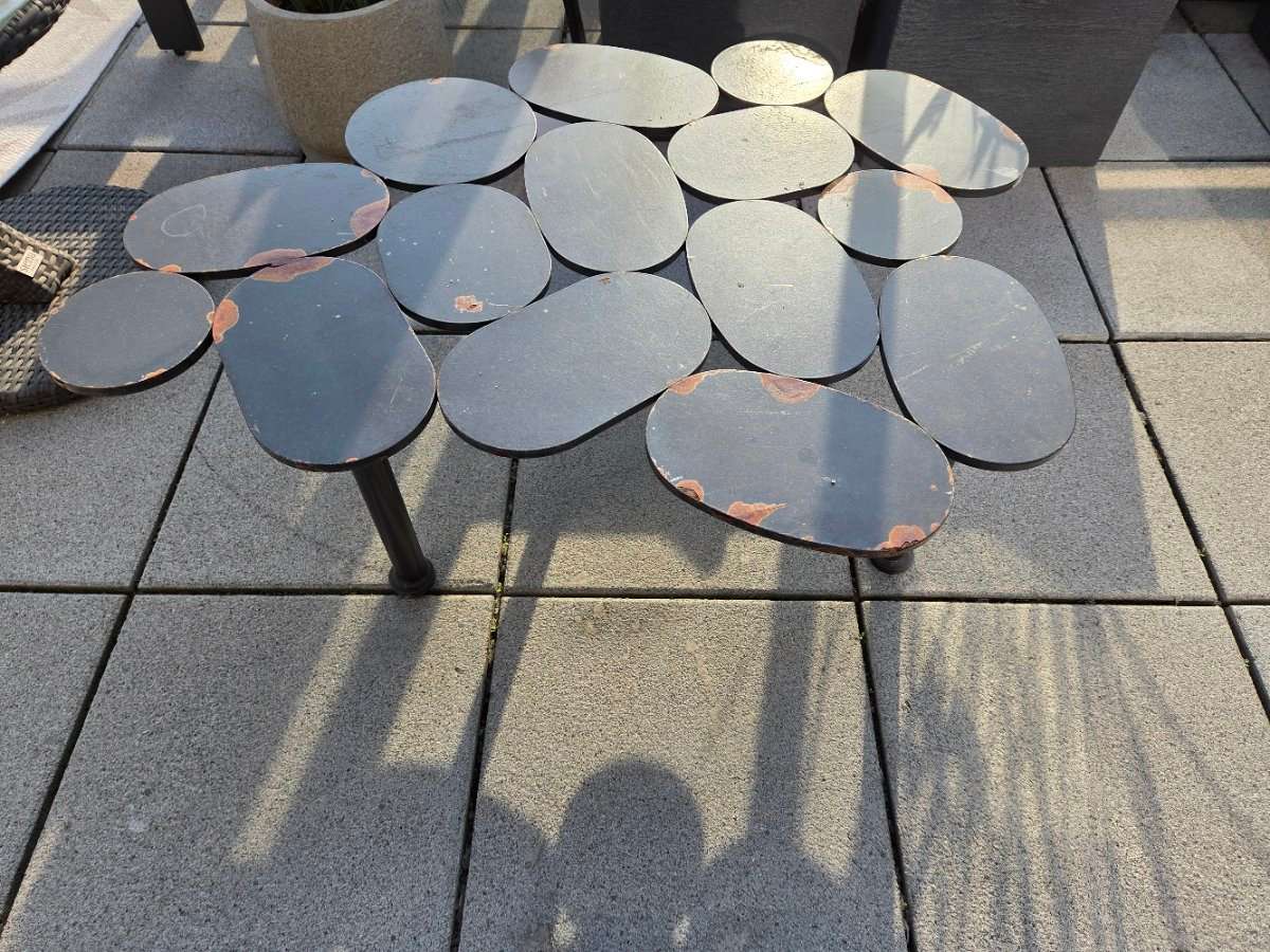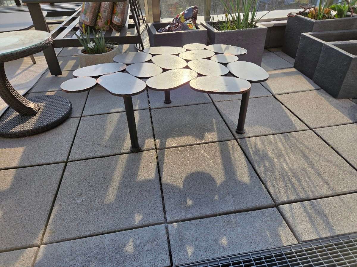 Verschenke meinen voll metall beistelltisch für die Terrasse. Höhe 34cm Breite ca. 75cm Länge 96cm
