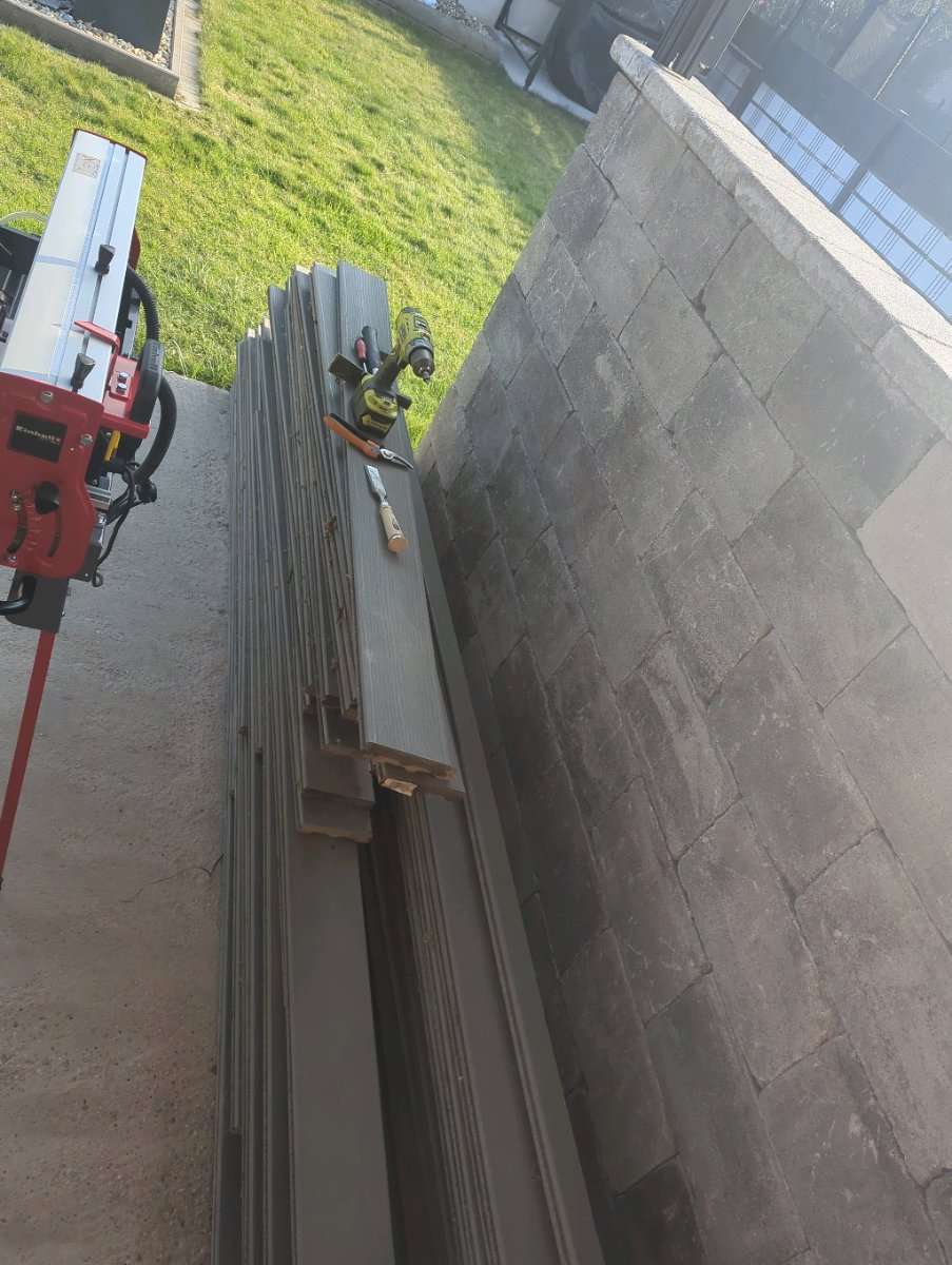 Zum Verschenken 24 Quadratmeter WPC Dielenboden in grau siehe Bilder. Nur mehr verfügbar bis nächste Woche