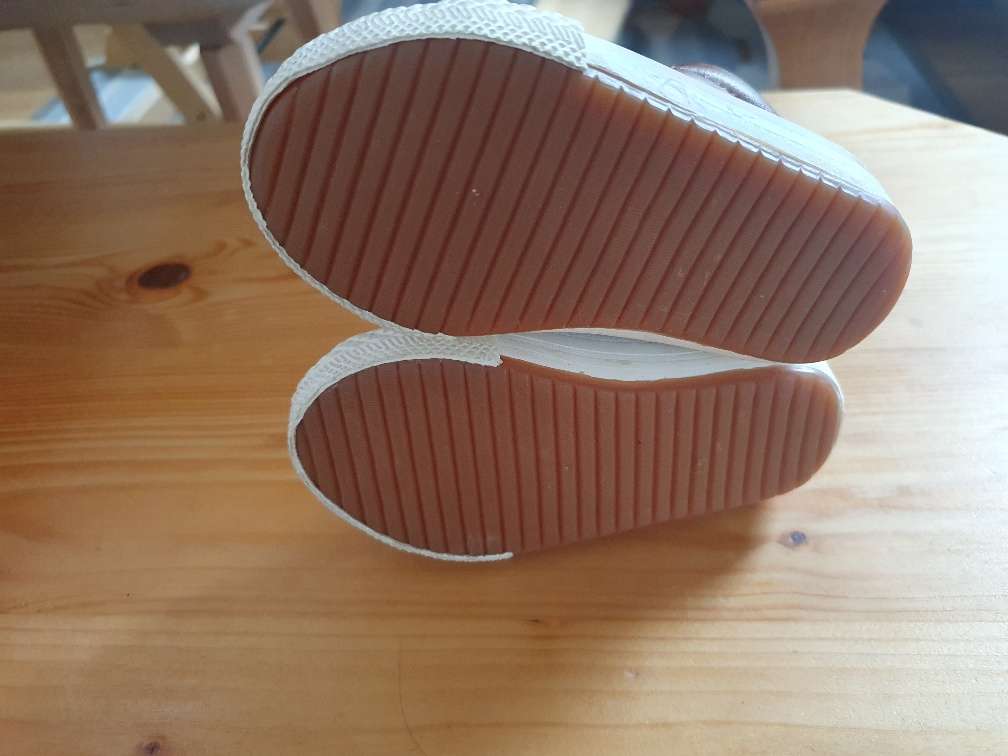 Wurden nur für eine Taufe getragen. Kleine Abnützungen erkennbar, siehe Fotos. Die Schuhe sind meiner Meinung nach NICHT für Gehanfänger geeignet. Für Fotos, Deko etc aber gut geeignet.
