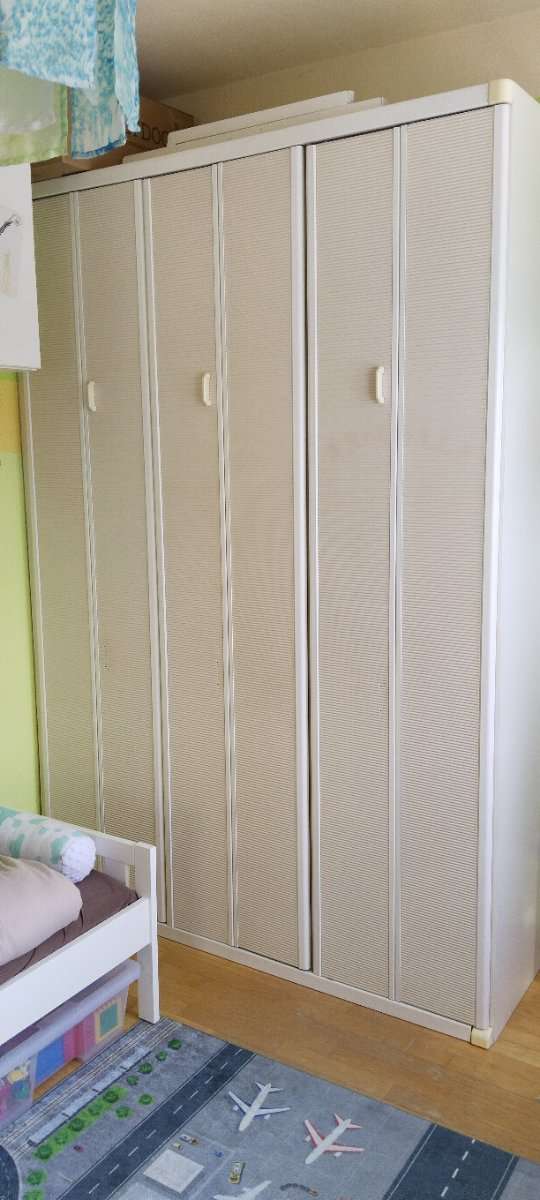 Verschenke sehr geräumigen Kleiderschrank gegen Selbstabbau und Selbstabholung im 23. Bezirk (Mauer). Maße: 220cm hoch 155cm breit 55cm tief Die Schiebetüren falten sich beim Öffnen nach Außen, was sehr praktisch ist, wenn man vor dem Schrank nicht viel...