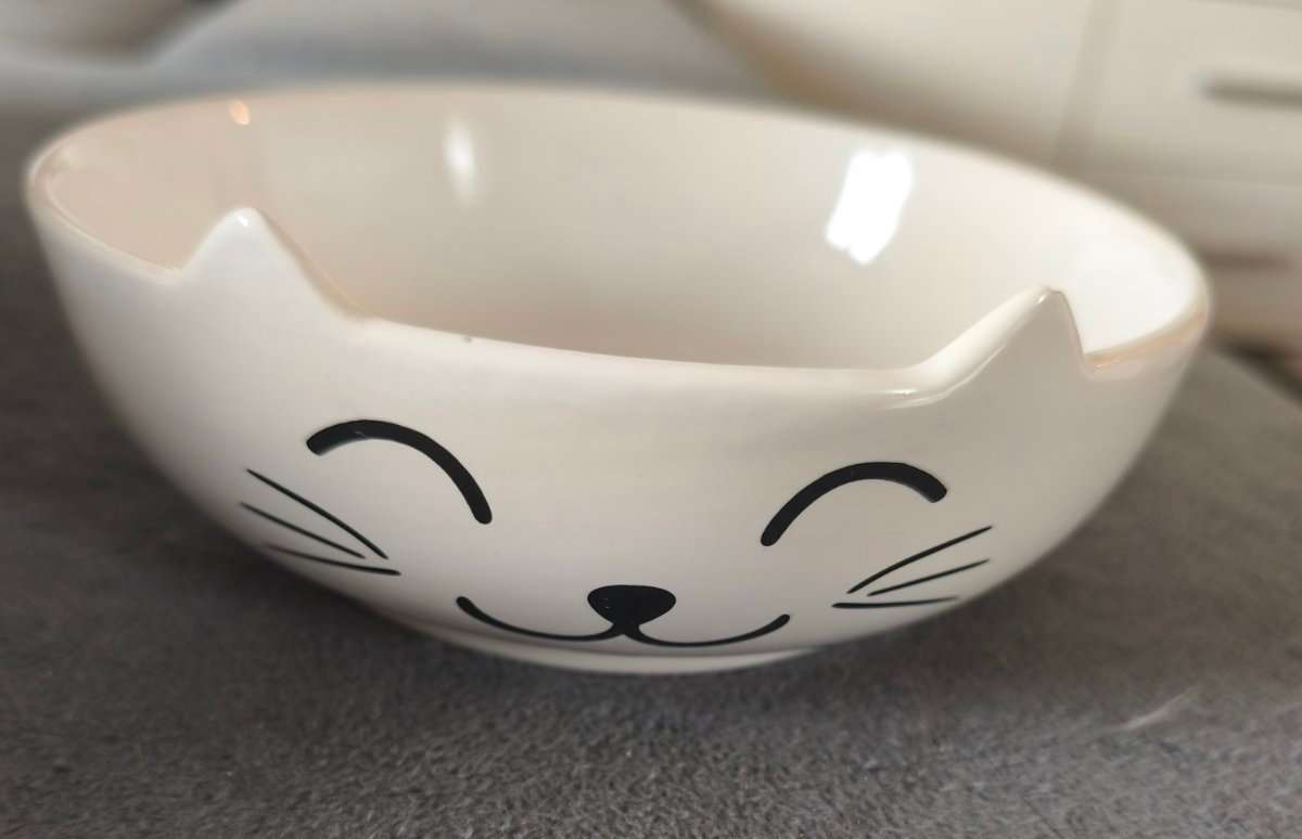 Katzen Bett ist neu. Meine Katzen wollen nicht rein. Spielzeug ist auch neu. Geschirr hat eine kleine Defekt - kann mann auf die Bild es sehen.