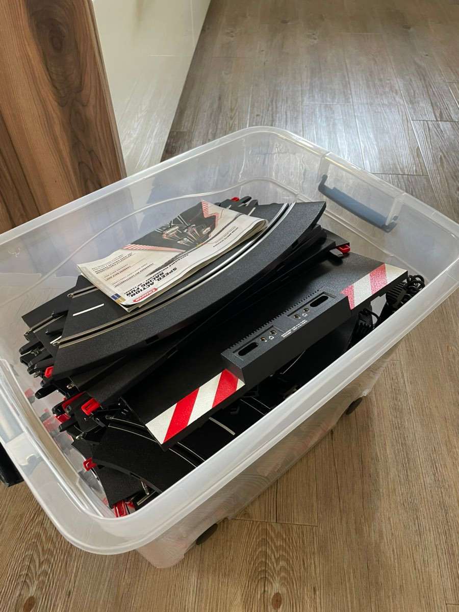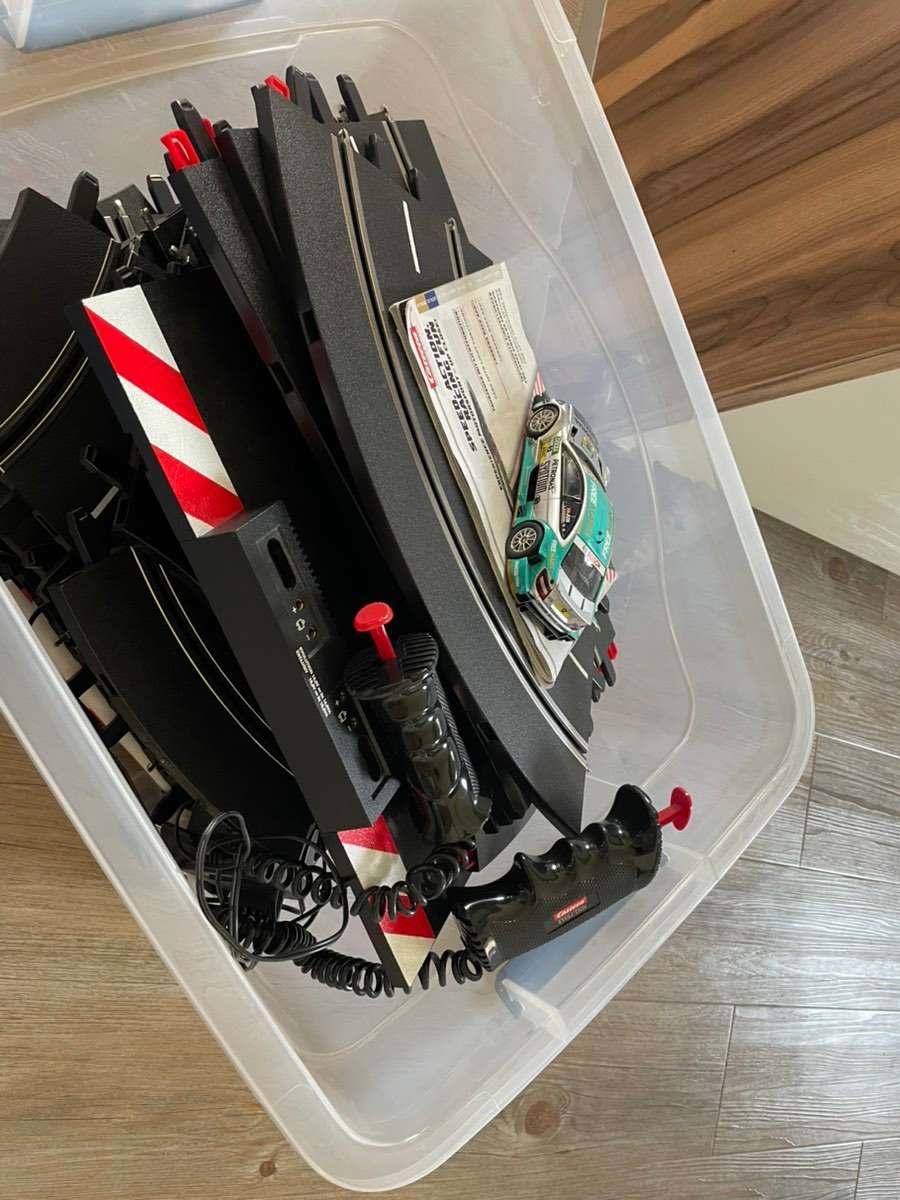 Verschenke 1 Schachtel Carrera Rennbahn. Funktioniert noch, jedoch schon in die Jahre gekommen.
