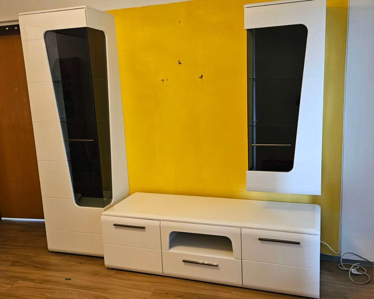 Wünderschöne Wohnwand bestehend aus 3 Teilen in weiß Hochglanz