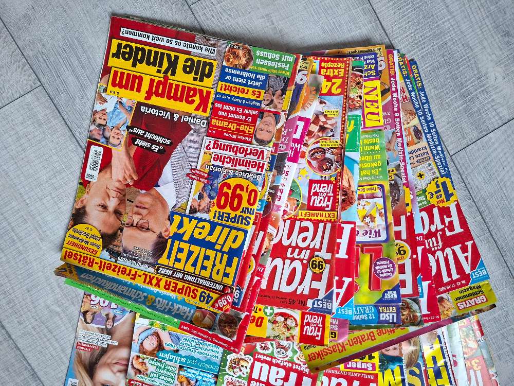 ca. 50 Frauenzeitschriften in gutem Zustand Bei Interesse und falls Sie ncht mit dem Auto kommen größere stabile Tasche mitbringen, da die Zeitschriften recht schwer sind Wer noch heute vorbeikommen kann wird bevorzugt