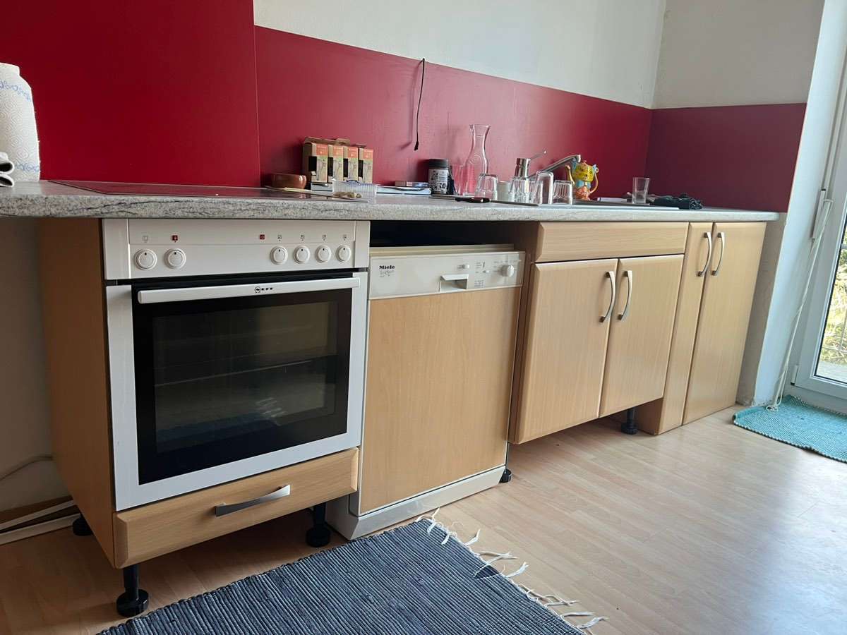 Vintage Holzküche zu verschenken! In Holzoptik und weiß, mit grauer Arbeitsplatte Außerdem gibt ein funktionierender Neff Ofen für 70€ und eine funktionierende Miele Spülmaschine für 50€. Insgesamt: Arbeitsplatte, eventuell Ofen, eventuell...
