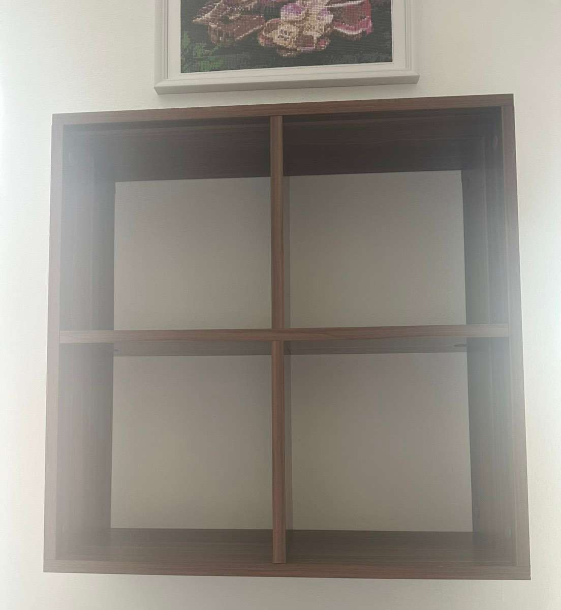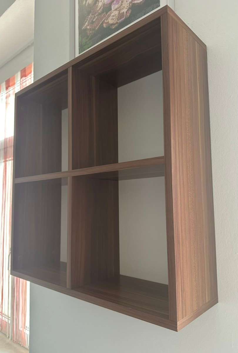 Wandregal in gebrauchtem Zustand zu verschenken Maße: 60 cm breit, 60 cm hoch, 18 cm tief Farbe: Eiche Dunkel Dekor keine Garantie, keine Haftung; kein Umtausch, Widerruf oder Rücknahme