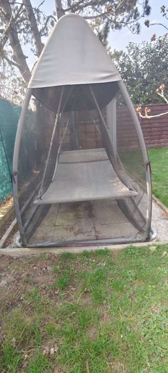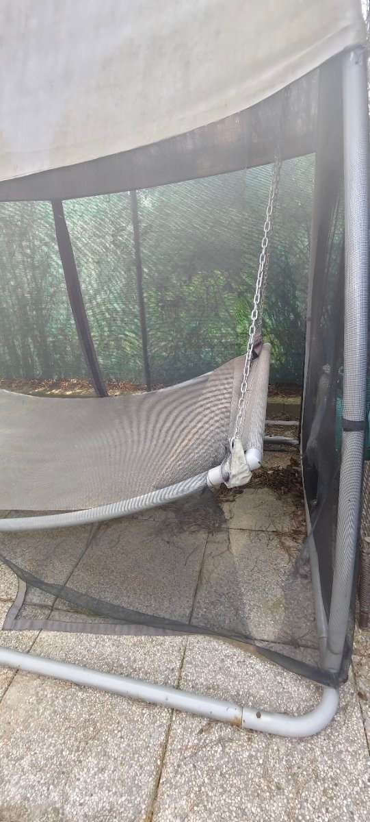 Da sie seit 2 Jahren unbenutzt im Garten steht verschenke ich gegen Selbstabholung und Abbau meine Gartenliege. Das Moskitonetz ist auf einer Seite leicht eingerissen und sie gehört witterungsmässig gereinigt.