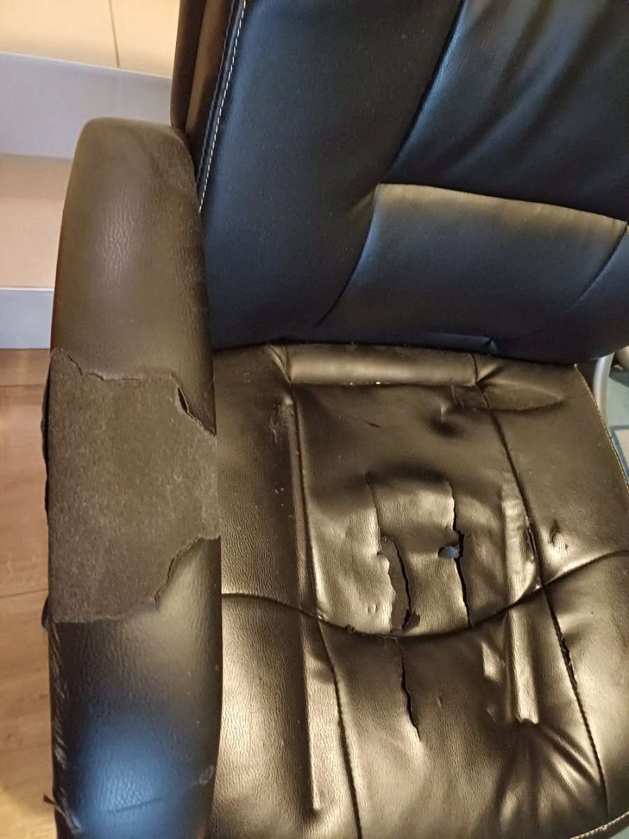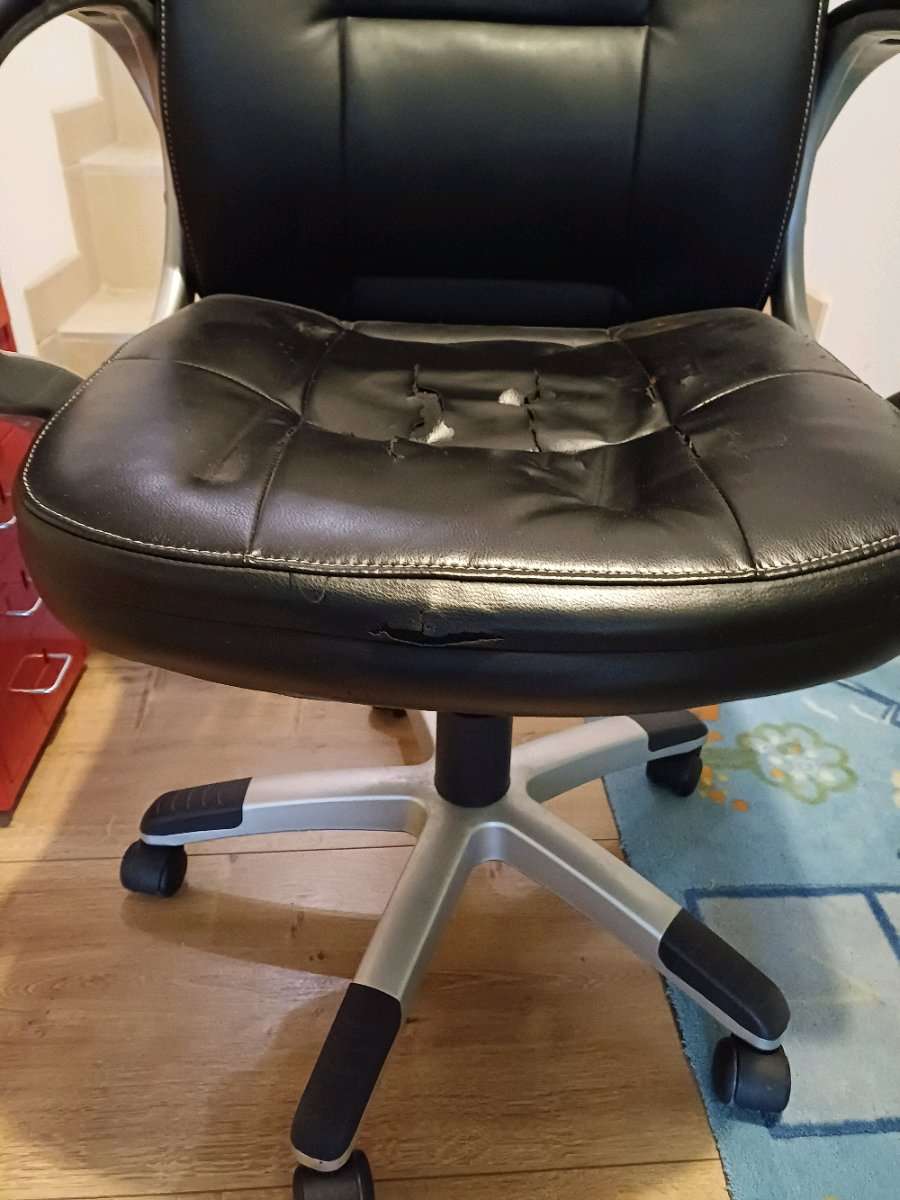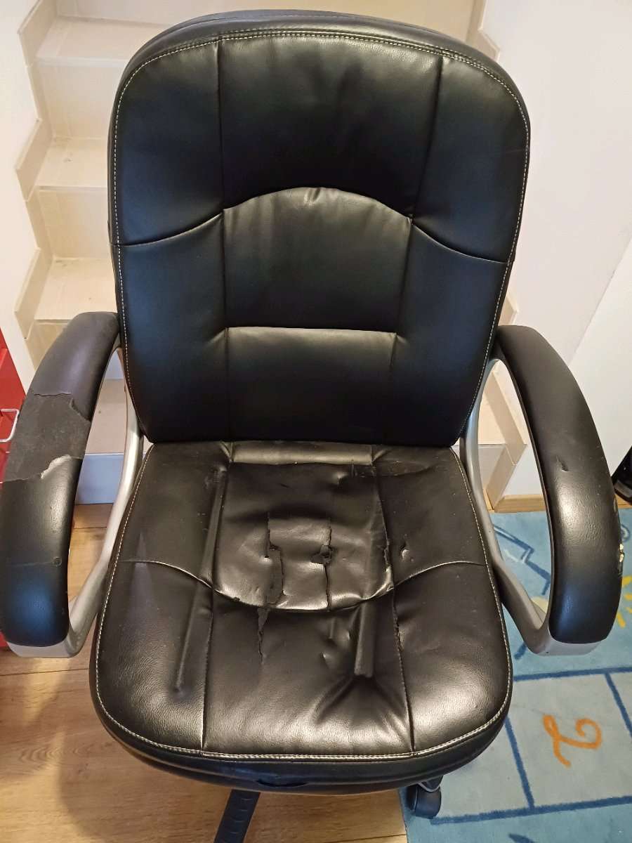 Bürostuhl aus Platzgründen abzugeben. Stoff ist wie auf den Fotos ersichtlich etwas defekt, kann aber mit ein bisschen Geschick neu bezogen werden.