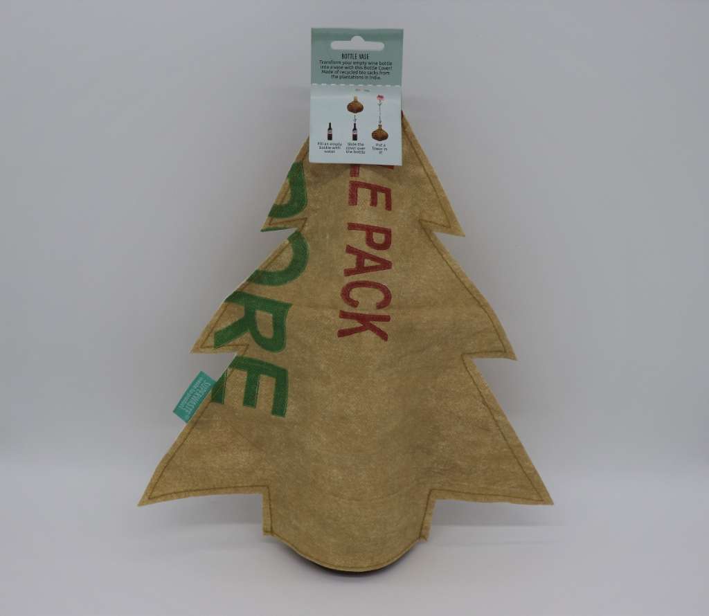Ein ganz besonderes Weihnachtsgeschenk: Das recyclete „Bottle Vase Cover“ des nachhaltigen Labels SuperWaste ist neu und garantiert unbenützt ! Die stylische Hülle verwandelt eine leere Flasche in eine moderne Vase im weihnachtlichen Design....