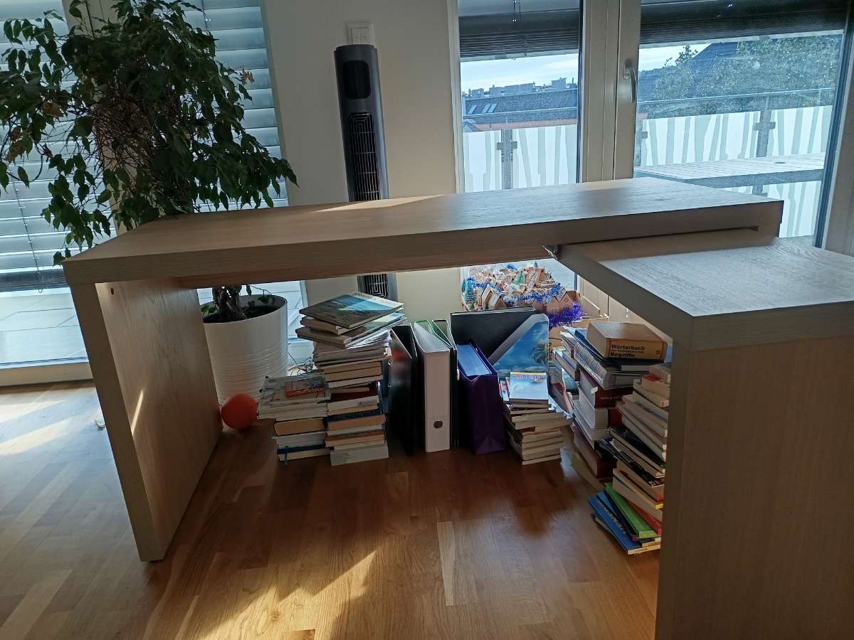 Verschenke einen ausziehbaren Schreibtisch in Eichenoptik (aufgrund von Platzmangel). Hat nur wenige Gebrauchsspuren. Selbstabholung in der Wohnung. Maße: 150 Länge x 72 Höhe x 65 Tiefe (+ weitere 51 cm wenn ausgezogen)