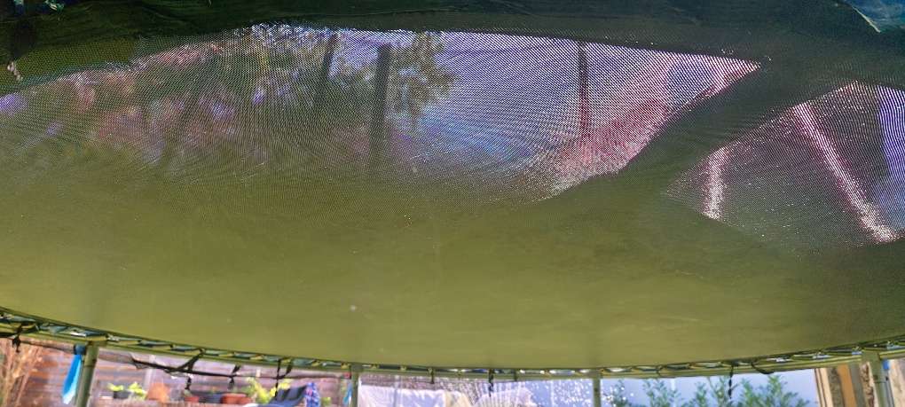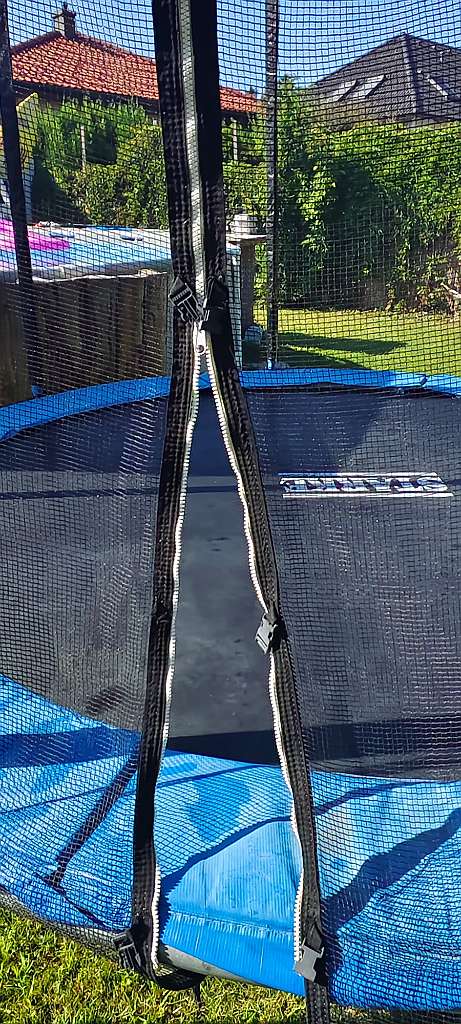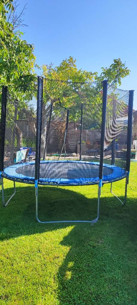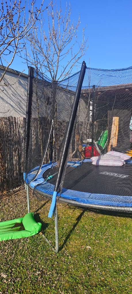 1. Kiste Punti Nur Selbstabholung und Selbstabbau Sprung Tuch komplett in Ordnung, Netz ebenfalls nur der blaue Rundschutz ist etwas durch die Sonne in Mitleidenschaft gezogen worden.