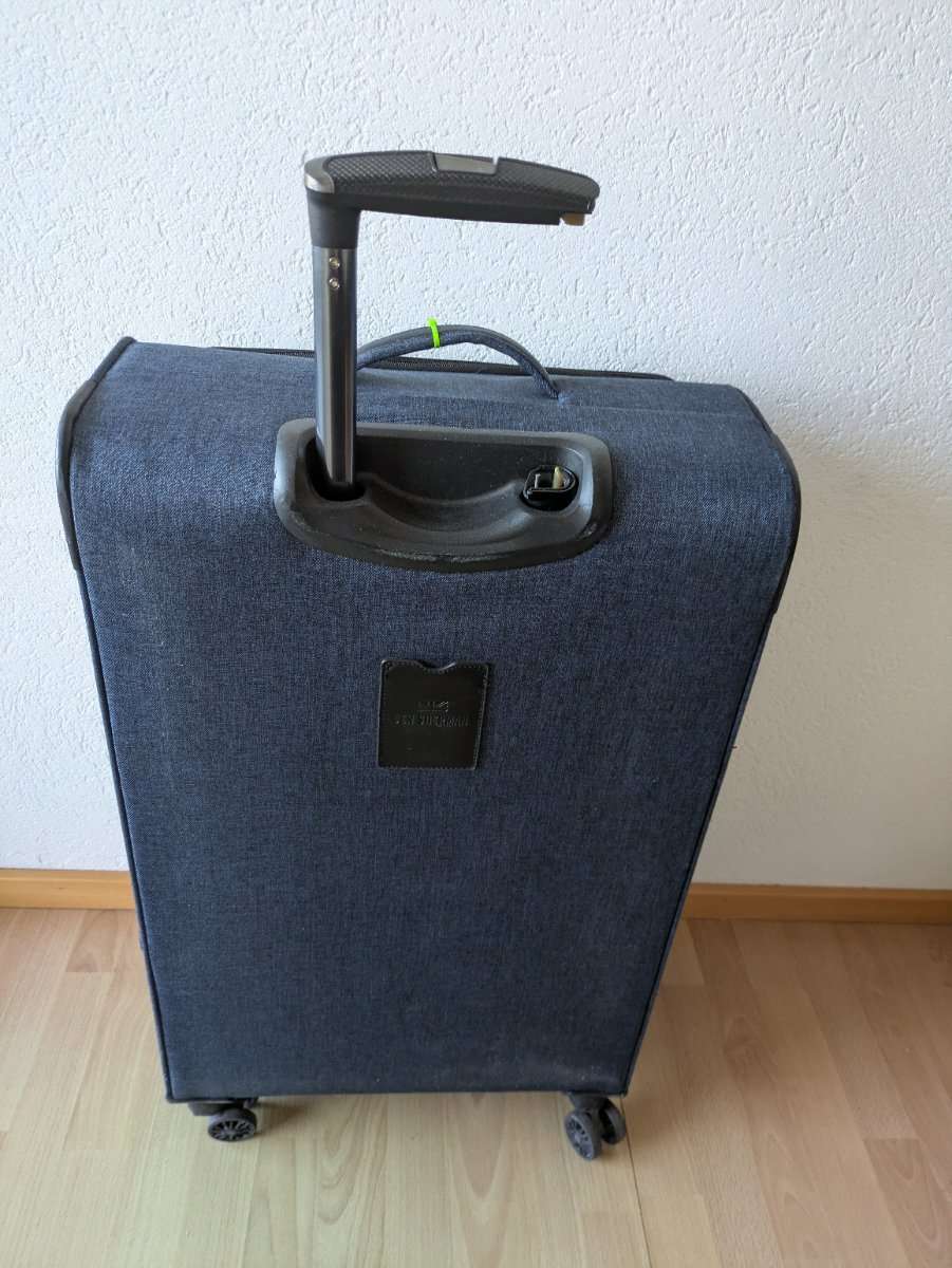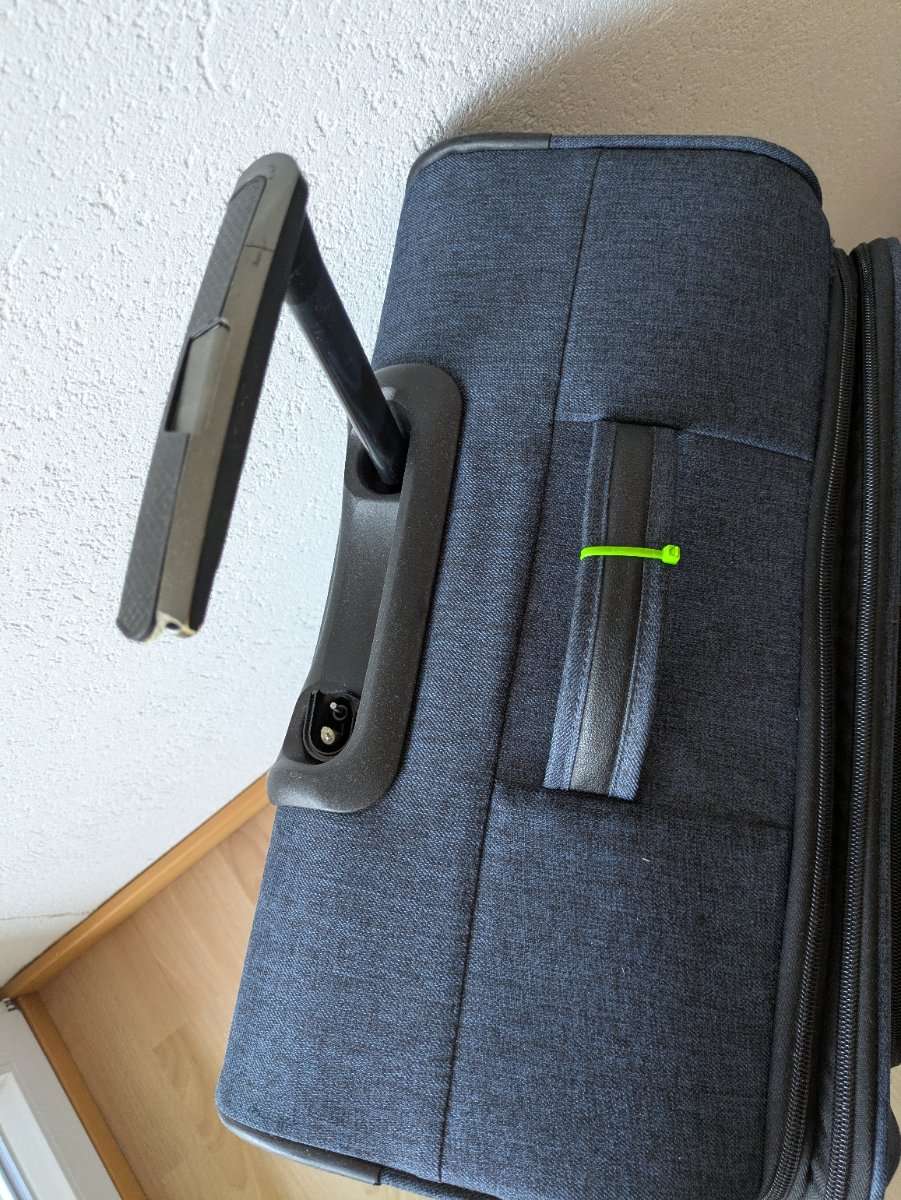 Koffer ansich in gutem Zustand, alle Reißverschlüsse funktionieren einwandfrei. Leider ist Teleskopgriff gebrochen