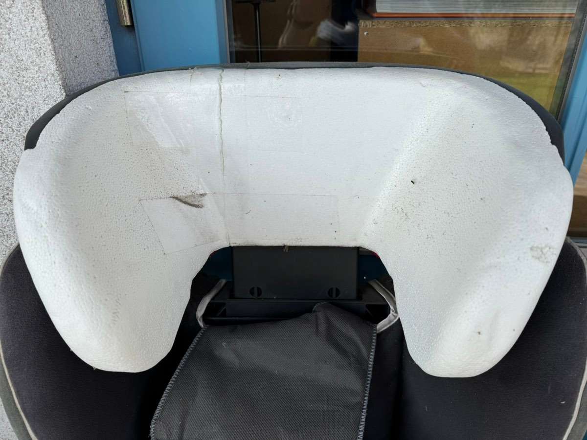 Verschenken unseren Kindersitz von Britax Römer. Wir mussten das Styropor kleben, und der Sitz ist etwas schmutzig. Isofix funktioniert.