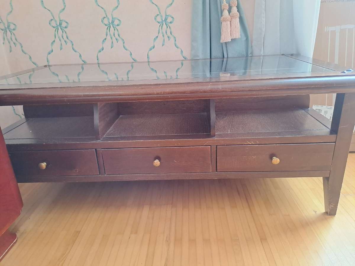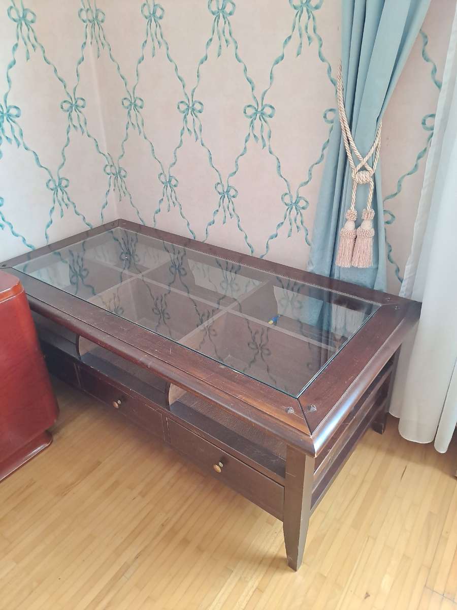 Couchtisch Vollholz und Glas