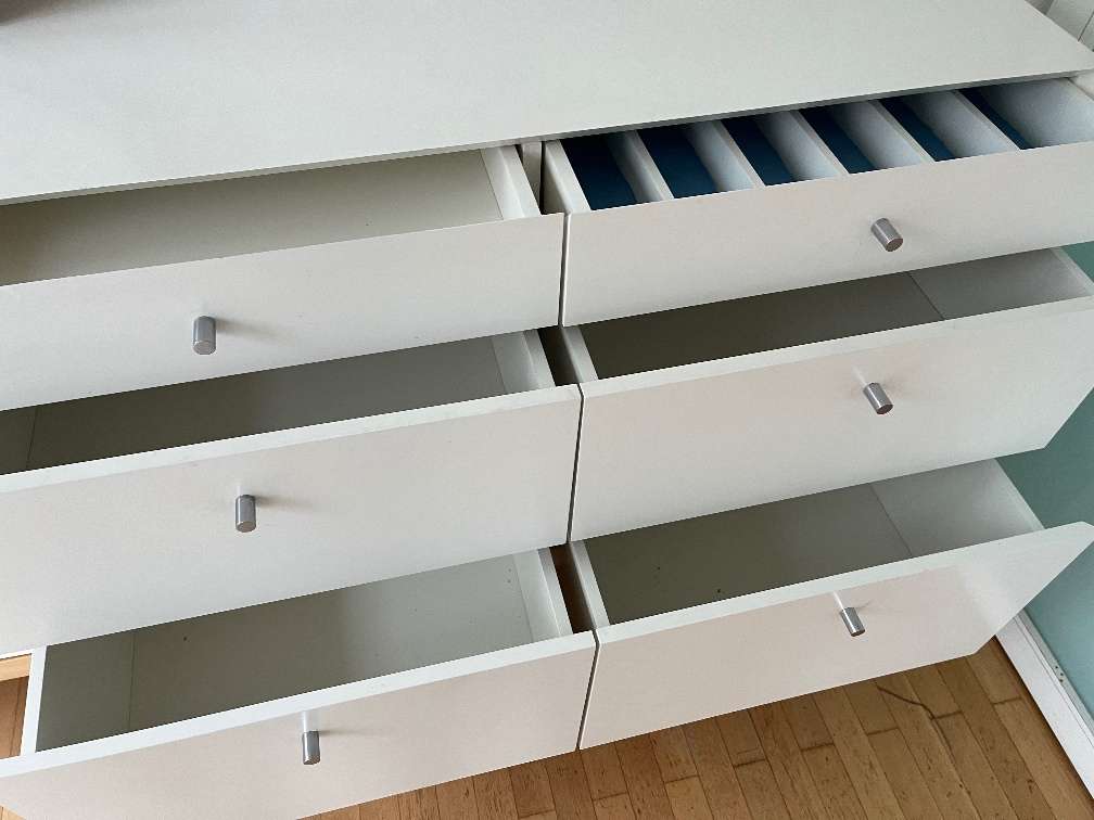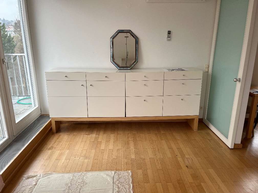 Die Kommode ist etwas renovierungsbedürftig. Sie muß in der Mitte verschraubt werden. Eine Hälfte war vor einem Heizkörper, da ist die Kommode weniger tief. Maße: 260breit, 43tief, linke Hälfte 25 tief Schwer zu transportieren! Geht sicher nicht in den...