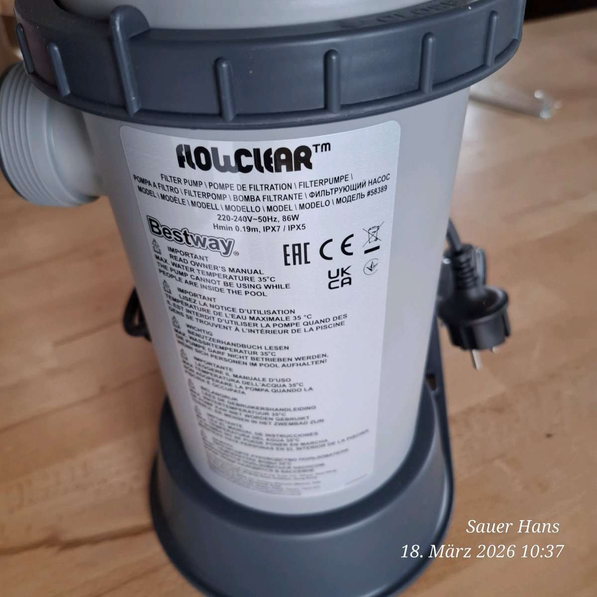 Nagelneue Filterpumpe der Marke Bestway . Wurde von für die Fotos ausgepackt. Original Karton noch vorhanden.