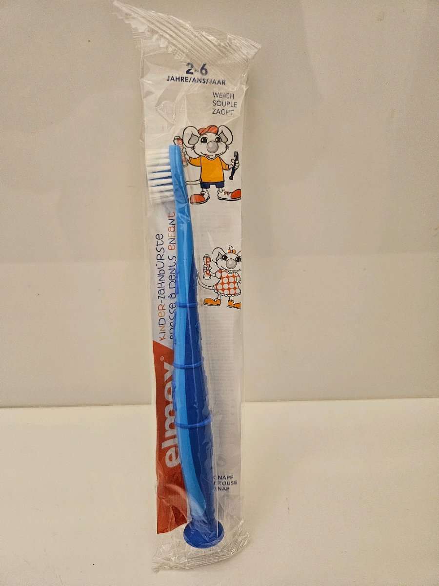 Elmex Zahnbürste 2 - 6 Jahre, blau mit Affenmotiv, NEU & ORIGINAL VERPACKT