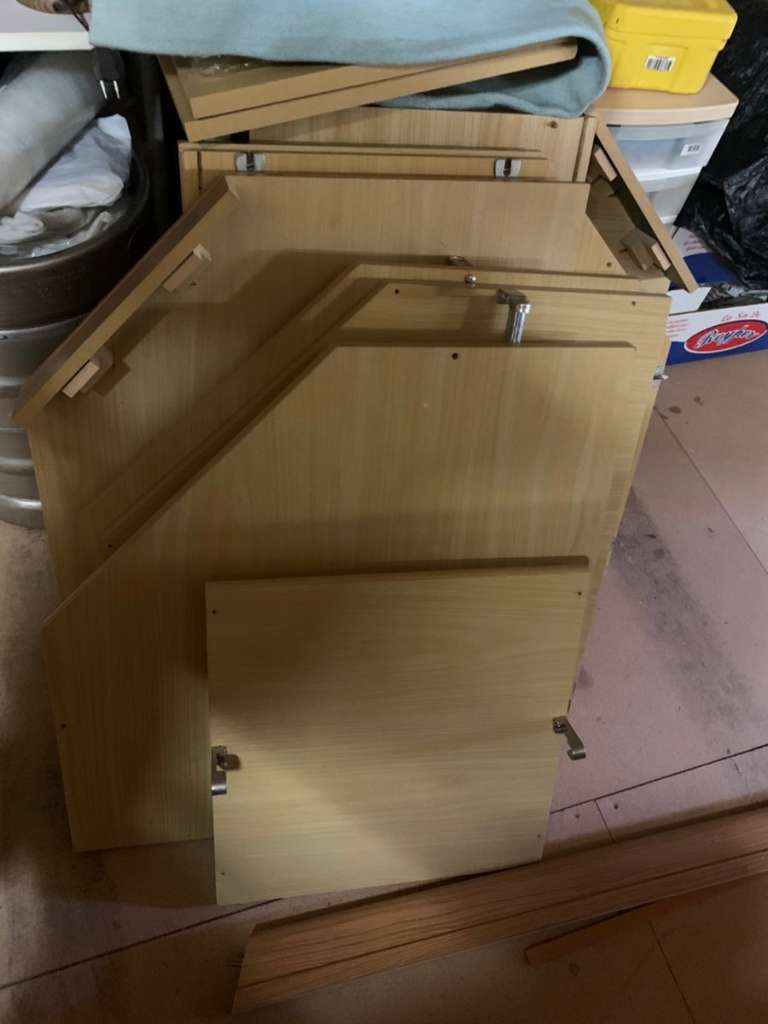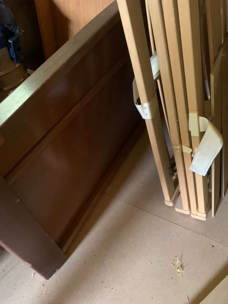 Siehe Fotos! Gut erhaltenes Schlafzimmer zu verschenken! Alter 6Jahre, mit Oberschränke, Nachtkästchen und Einsätze. Schrauben alle vorhanden!