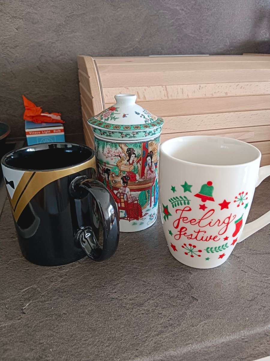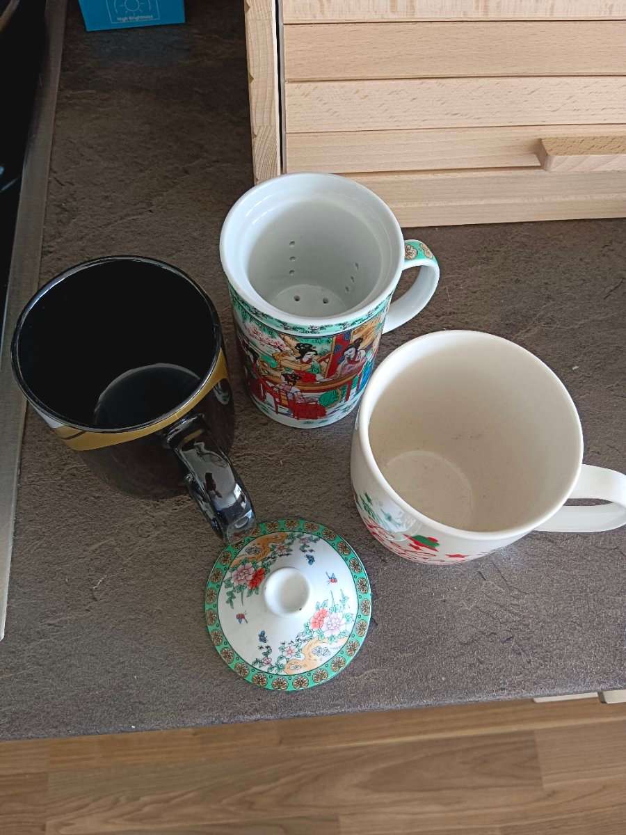 Gebrauchte Tassen ( eine hat ein Sieb für Tee) Zu verschenken aufgrund des Umzugs Am besten heute noch abholen