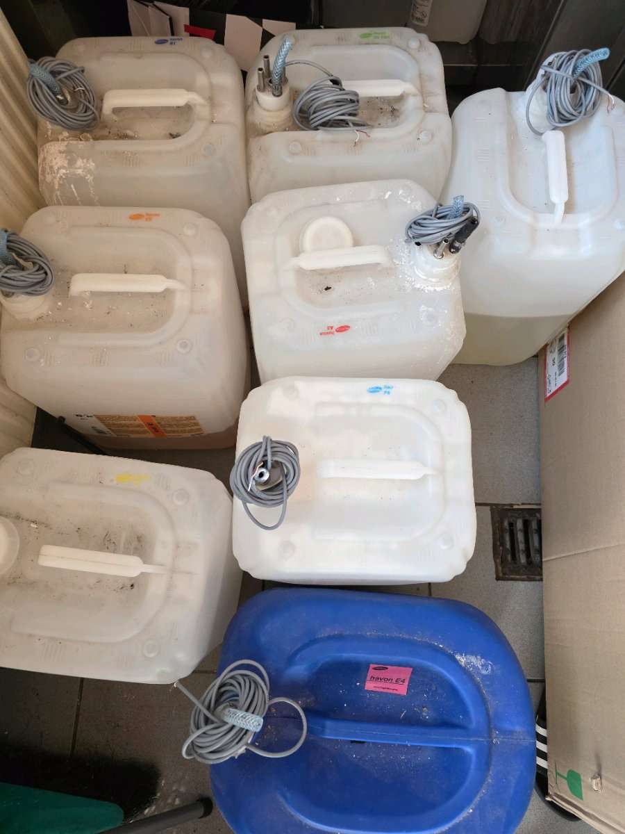 Verschenke für Hagleitner Dosieranlage für Waschmaschienen diverse Kanister unterschiedlicher Füllmenge