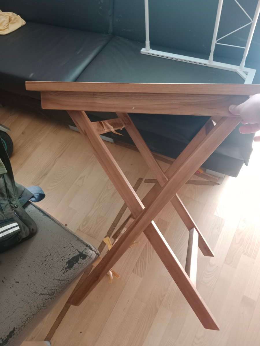 Zu verschenken wegen Umzug. Nur wenige Male benutzt. Tischfläche: Ca. 60cm² Kann von einer Person getragen werden.