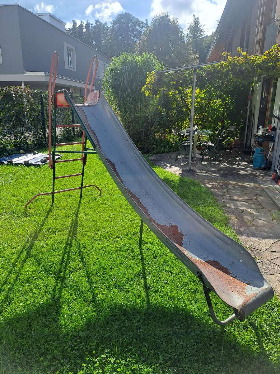 Kinderrutsche aus Stahl gebraucht lt. Bildern gegen Abholung abzugeben Höhe 2 m Länge 3 m