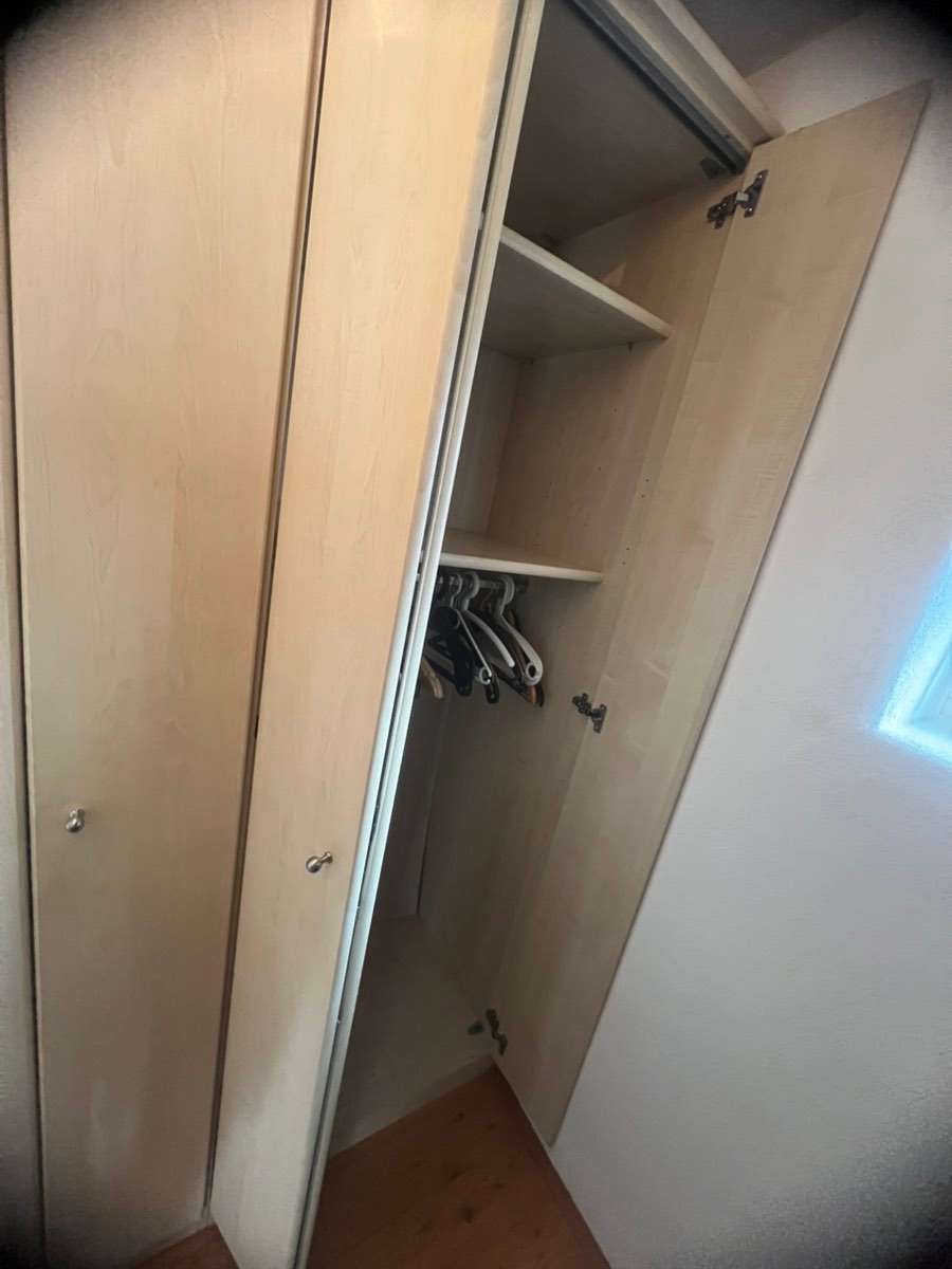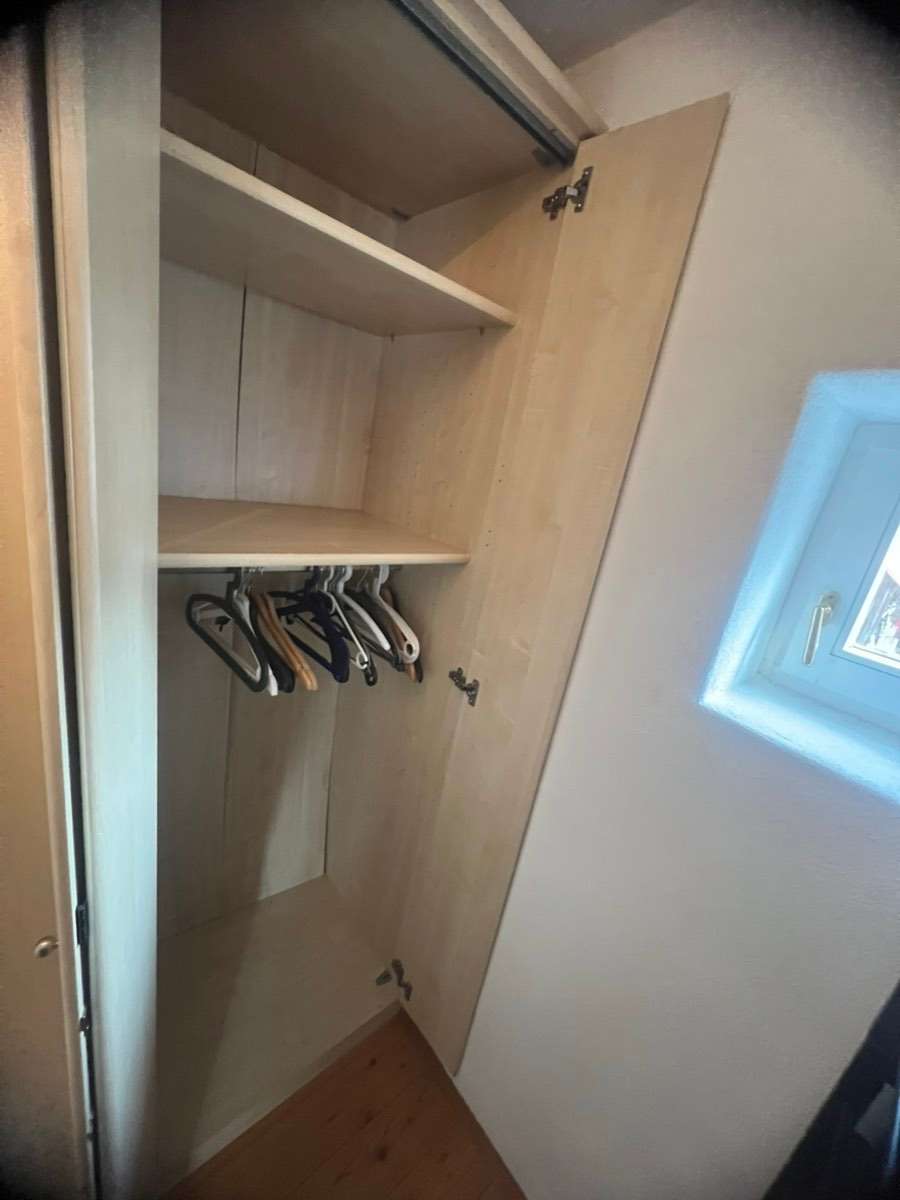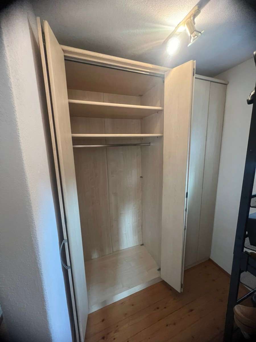 Ich verschenke einen total intakten schönen und gepflegten Kleiderschrank in beige mit falttüren. Maße Breite 175 cm Höhe 223 cm Tiefe 60 cm