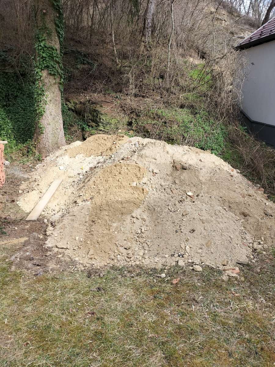 Verschenke Aushub. Sand, Schotter, Ziegelbruch Gemisch. Hauptsächlich feines Material. Ca. 6-7m3
