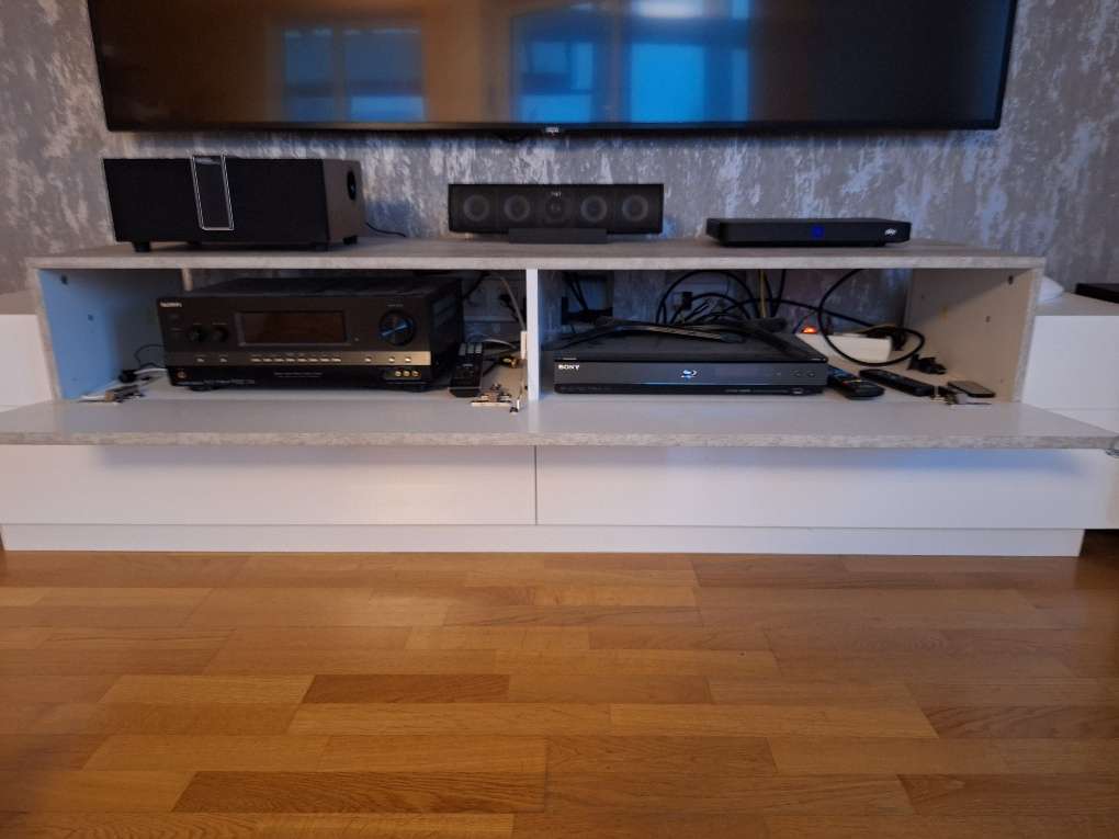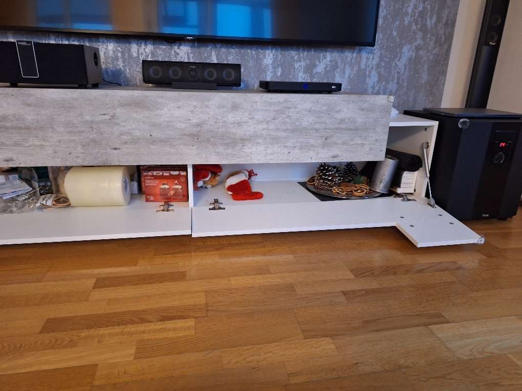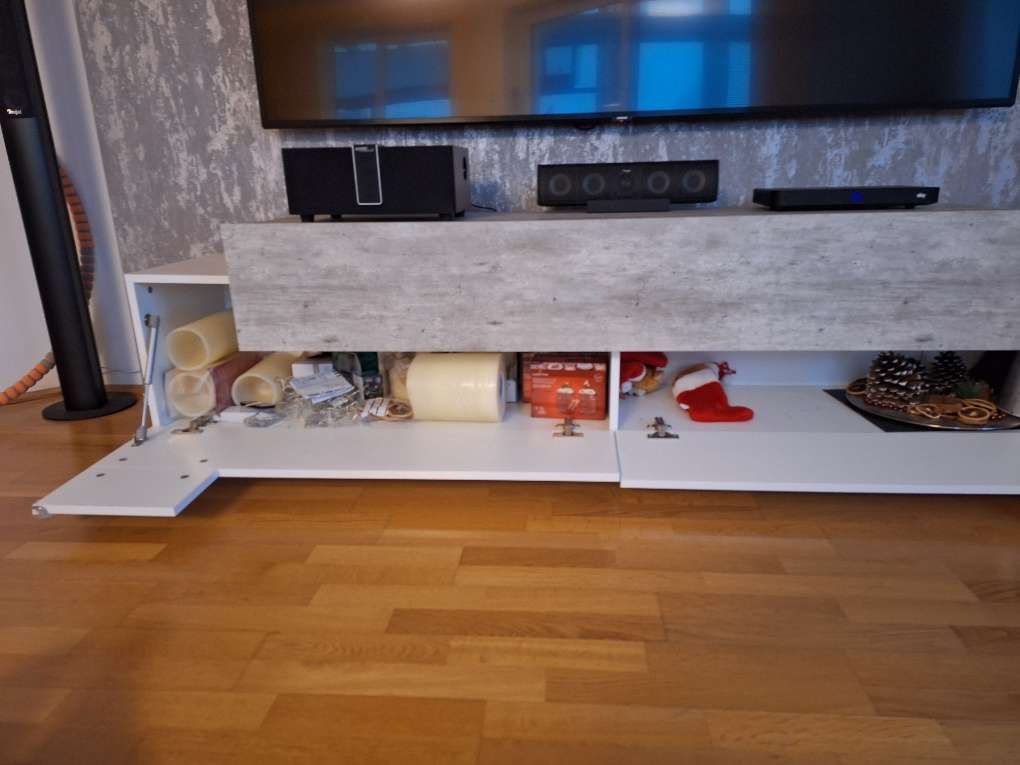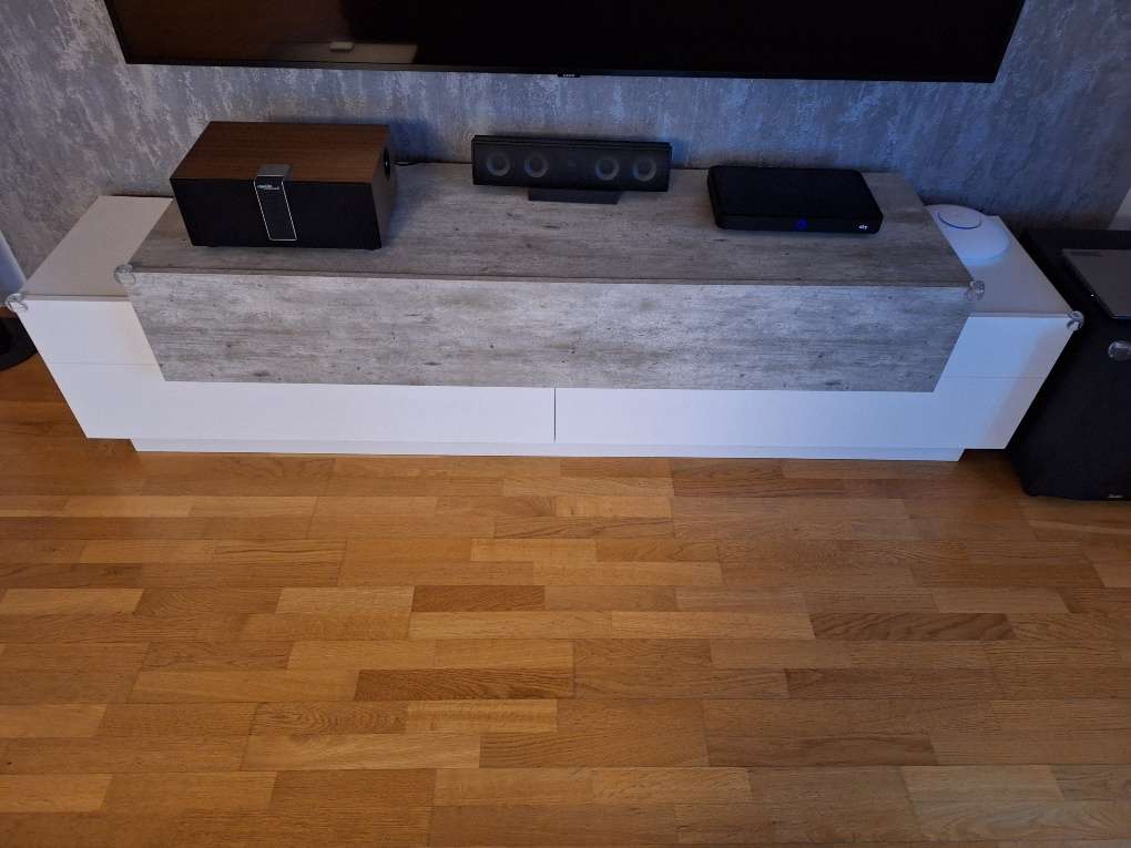 Die Maße: Länge: 2m Höhe: 51 cm Tiefe: 45 cm Es hat an einer Ecke einen Mini-Abplatzer, siehe Foto. Von vorn sieht man es aber überhaupt nicht. Ansonsten ohne Beschädigungen. Wir sind ein tierfreier Nichtraucherhaushalt. Da es sich um einen...