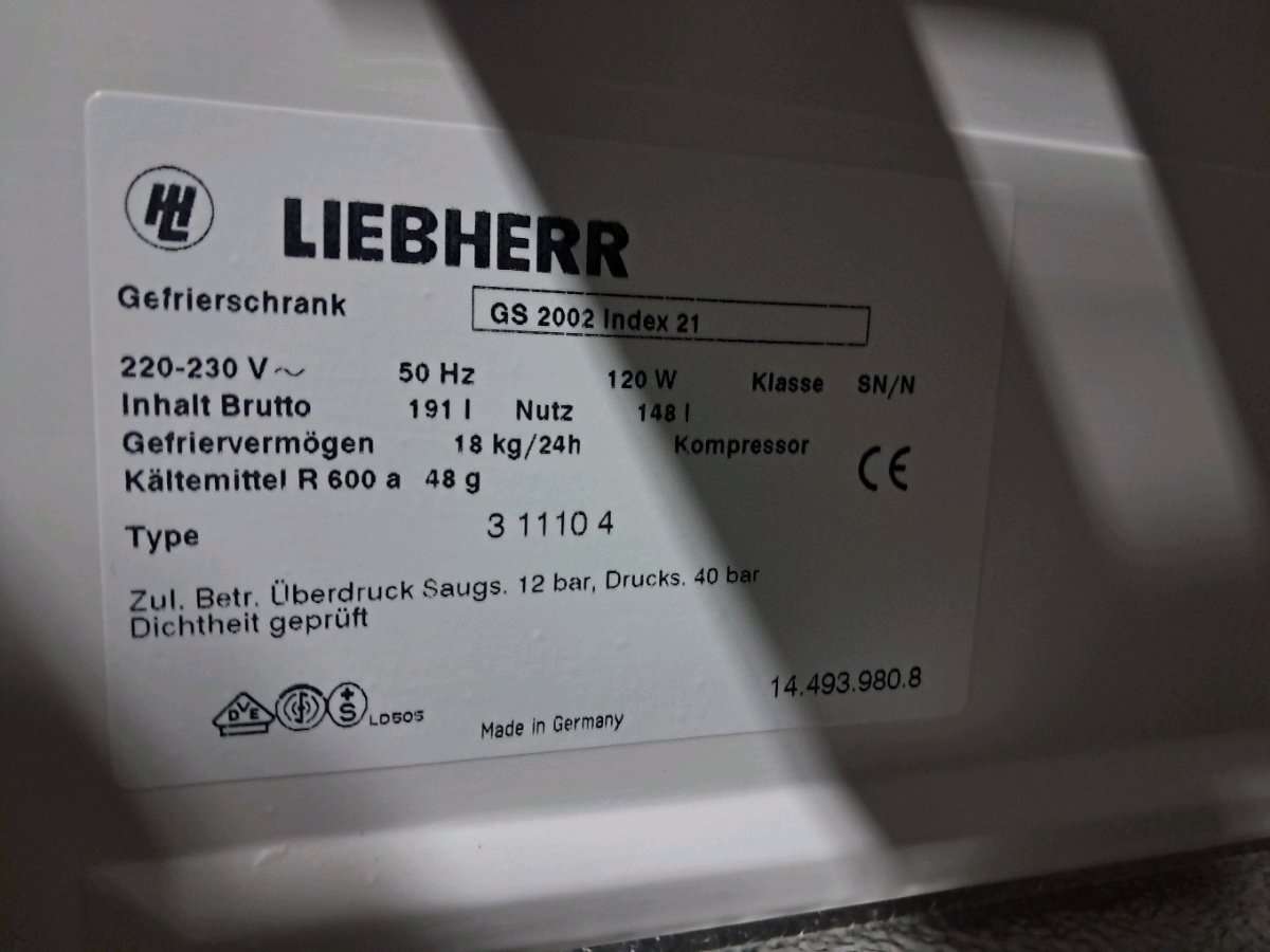 Liebherr Gefrierschrank Maße ca. Breite 60 cm x Tiefe 60 cm x Höhe 114 cm Voll funktionstüchtig! Altersbedingte Gebrauchsspuren