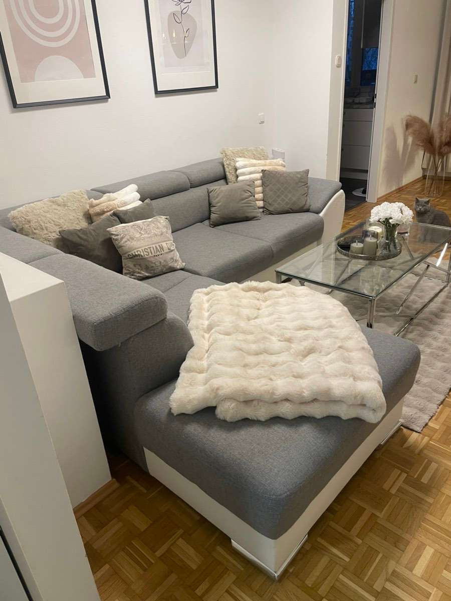 Gebrauchte bequeme Couch zu verschenken. Hat ein paar kleine Gebrauchsspuren jedoch noch im guten Zustand. siehe Fotos Bei Interesse gerne schreiben und einfach abholen. Länge: 2,35 Breite: 2,73 Keine Gewährleistung und keine Garantie.