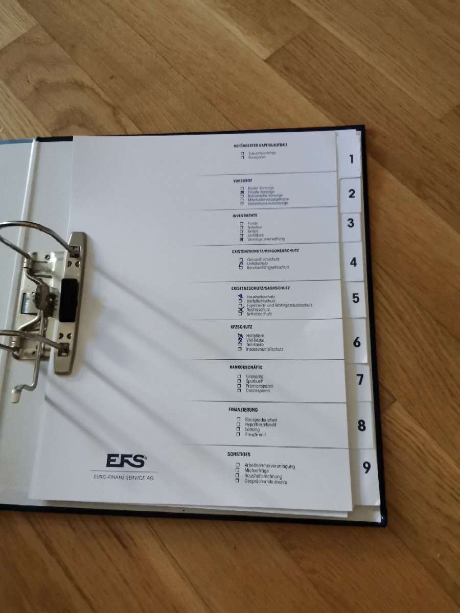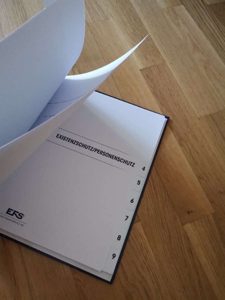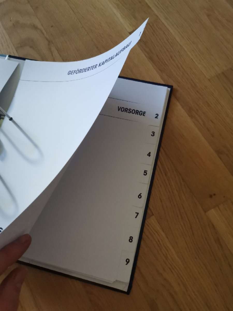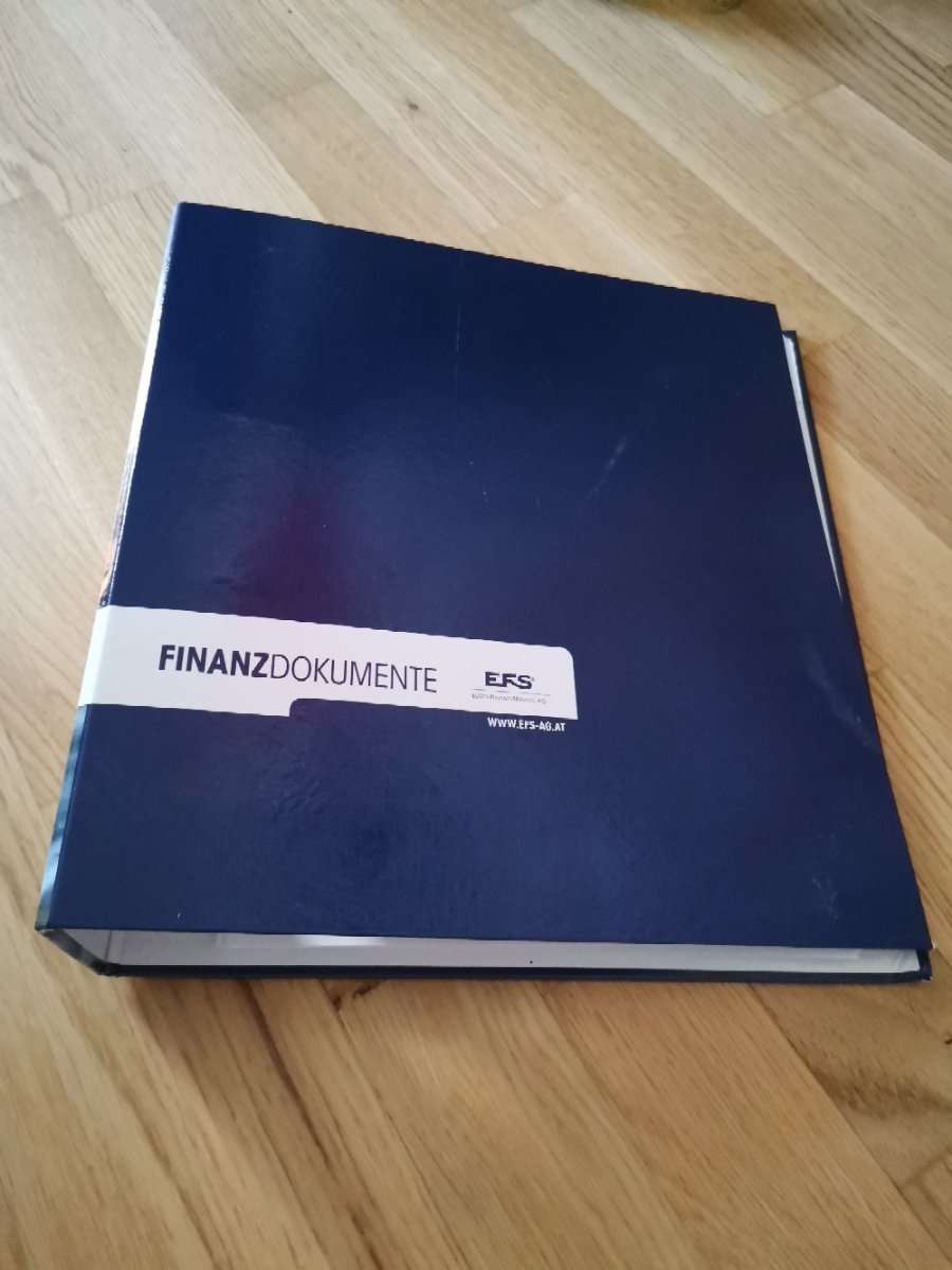 Grosser Ordner für Unterlagen wie Versicherungen, Bankgeschäfte, etc. Mit beschrifteten Trennblätter