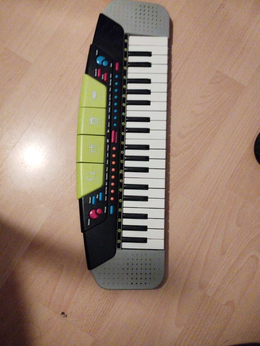 Linke weiße/schwarze Noten arbeiten leider nicht. Alle andere Knopfe in guten Zustand. Es hat ein paar Melodien gespeichert. 3 Batterie sind drinnen.