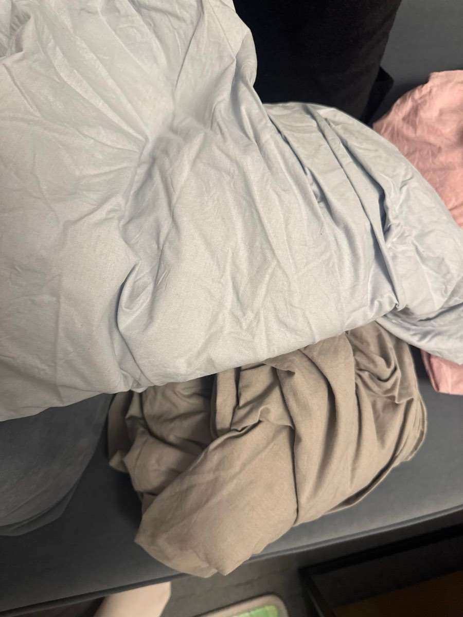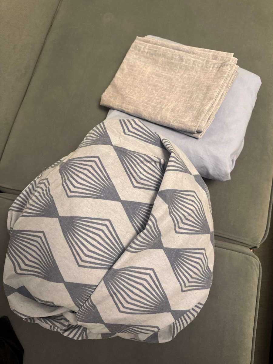 Alles um 20€ Spannleintücher sind 160x200 30 cm Bettwäschen 220x240 müssen es sein bin mir nicht sicher 5 sets insgesamt 2 (rosa und grau) sind sonderanfertigung