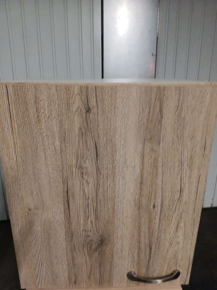 4 Küchenschränke zum Hängen 2x50cm 2x60cm Breite, 1 Apothekerschrank 30cm mit 6x Innenkorb, alles im selben Dekor, gegen Selbstabholung abzugeben.