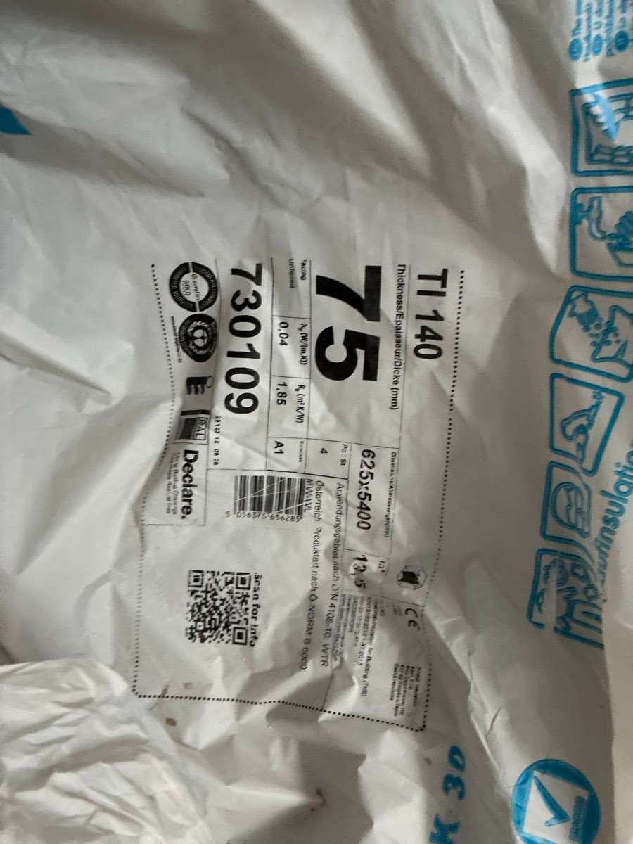 Knauf 75 mm Demmwolle. ca 1-2 meter