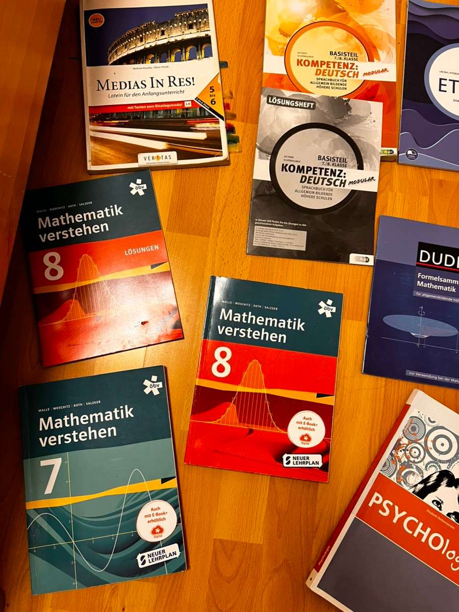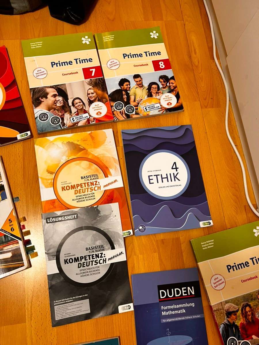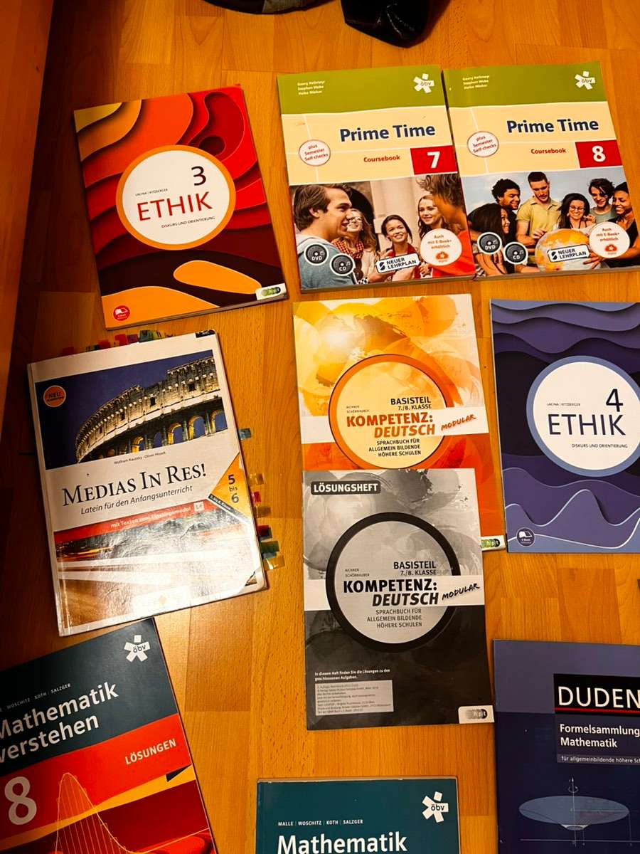 Alle gratis abzugeben, Versand ist aber selber zu tragen. In machen steht nichts drinnen, manche sind nur mit Textmarker markiert und manche sind viel ausgefüllt. Aber alle noch nutzbar. Zu haben: Ethik 3 Prime Time 7 Prime Time 8 Ethik 4 Medias in Res 5...
