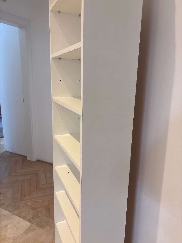 Verschenke weißes Regal mit Rollen Das Regal ist ca 20cm tief, 180cm hoch und 40cm breit. an der Hinterseite sind Rollen befestigt, also kann man es recht einfach bewegen. Zur Selbstabholung in 1180 Da Privatverkauf keine Garantie oder Rücknahme