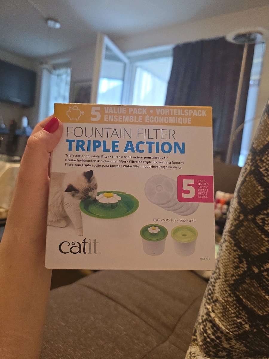 Catit Katzenbrunnen filter gebliebenen Filter für einen Catit Trinkbrunnen (Triple Action). Die Packung war ursprünglich ein 5er-Pack, ein Filter ist noch übrig. Wir brauchen ihn nicht mehr – vielleicht kann ihn jemand für seinen Katzenbrunnen gut...