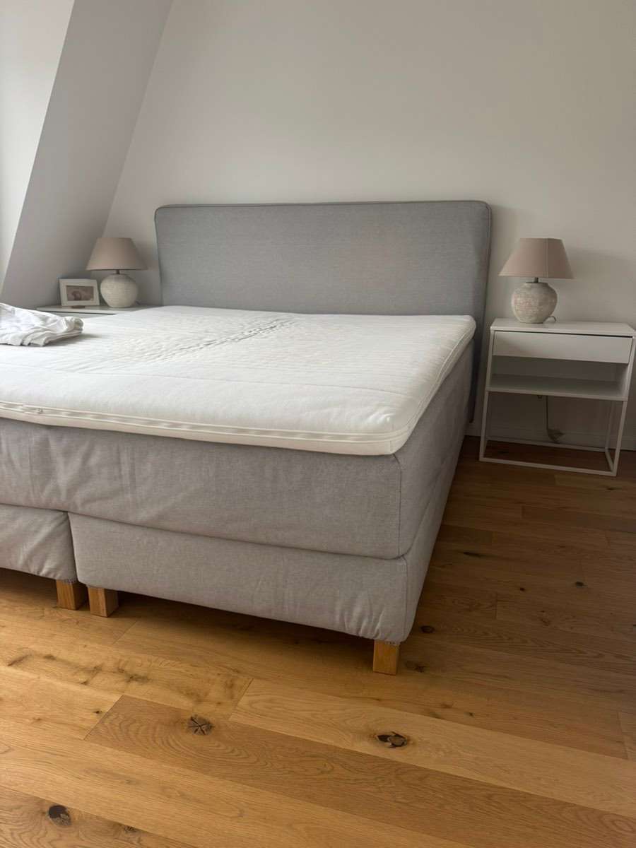 IKEA Boxspringbett 180×200 cm mit Topper – kaum benutzt, Top Zustand Beschreibung Zum Verkauf steht ein hochwertiges Boxspringbett von IKEA (180 × 200 cm) in sehr gepflegtem Zustand. Das Bett wurde nur selten genutzt und befindet sich daher nahezu im...