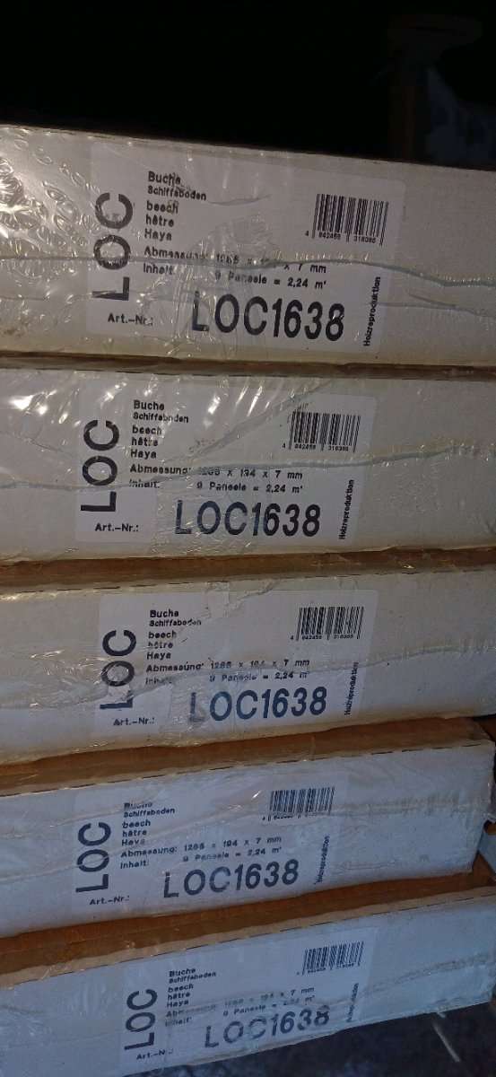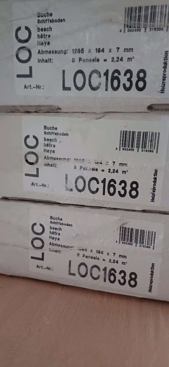6 Packungen Buchen Laminat 1285x194x7mm -> 2.24m² 5 Packungen Buchen Laminat 1380x195x8mm -> 1.88m²