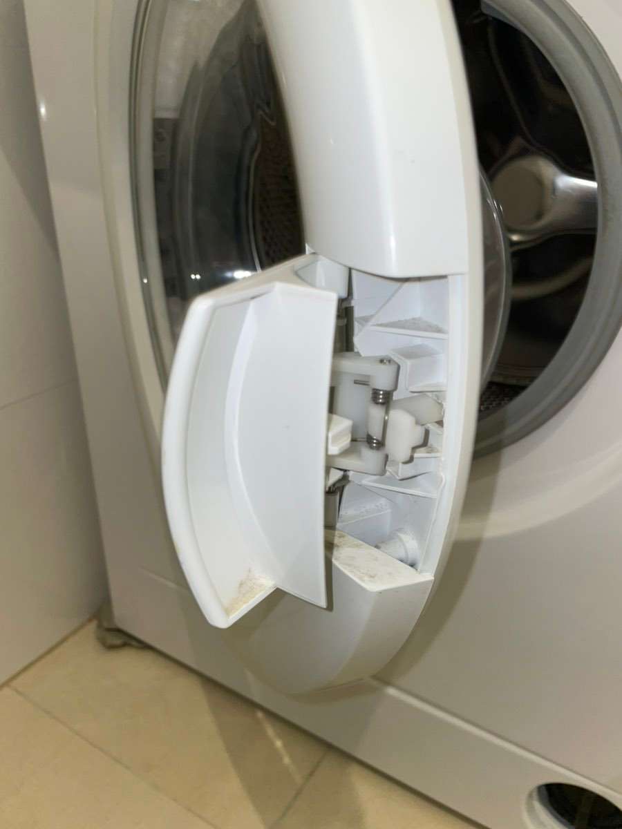 Der Verschluss der Waschtrommel ist leider etwas kaputt, kann aber trotzdem problemlos mithilfe eines Kabels oder kurzen Schnur geöffnet werden. A+++