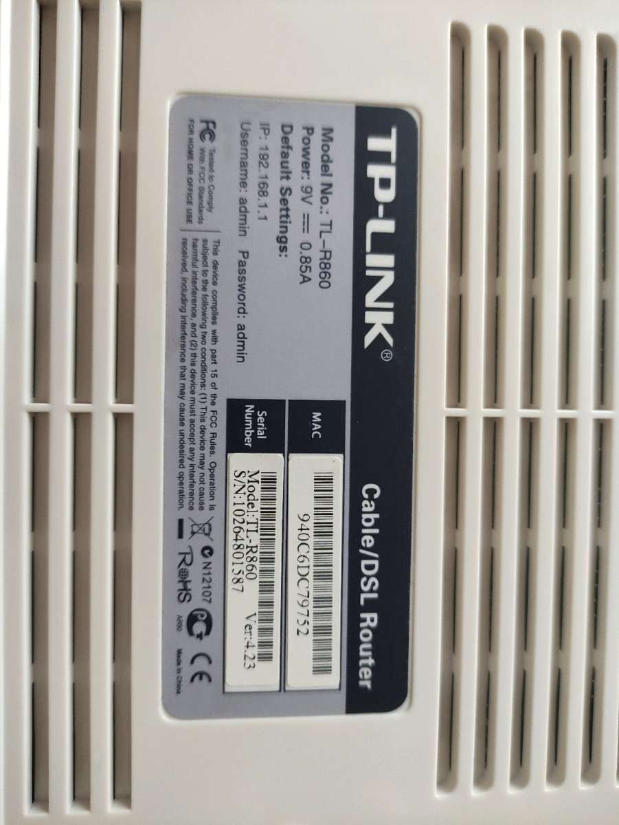 Cable/DSL Router TP-Link TL-R860 zu verschenken Keine Garantie oder Gewährleistung auf dieses Produkt