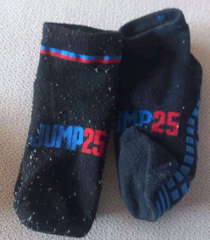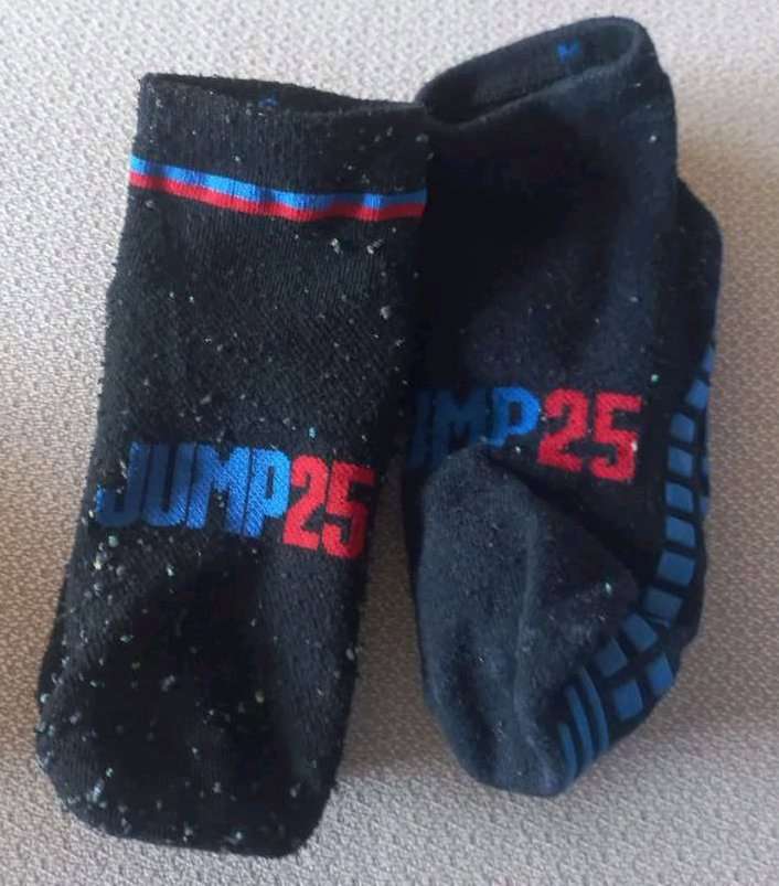 Wir verschenken 1 Paar Hupfsocken Gr S und M jump25 und 1x Hupfsocken Gr M vom Fliplab. Trampolin Socken Kinder. Unbeschaedigt! Tierfreier Nichtraucher Haushalt! Gratis* For Free*