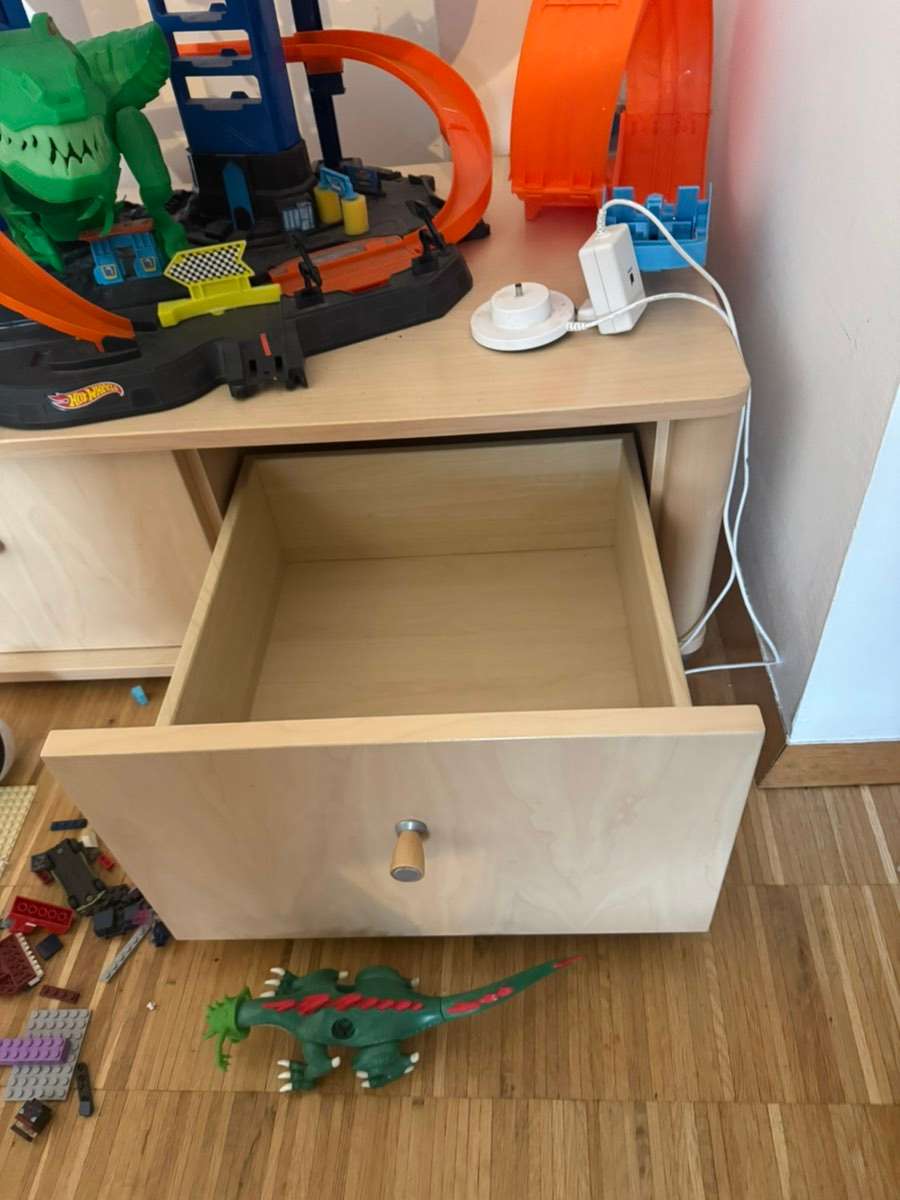 Sideboard aus massivem Holz Sehr stabiles Sideboard aus Holz. Gebraucht, aber in gutem Zustand. Maße: Tiefe: 58 cm Höhe: 32 cm Breite: 95 cm Ideal für Wohnzimmer, Kinderzimmer oder Vorraum. – keine Garantie, Gewährleistung oder Rücknahme.