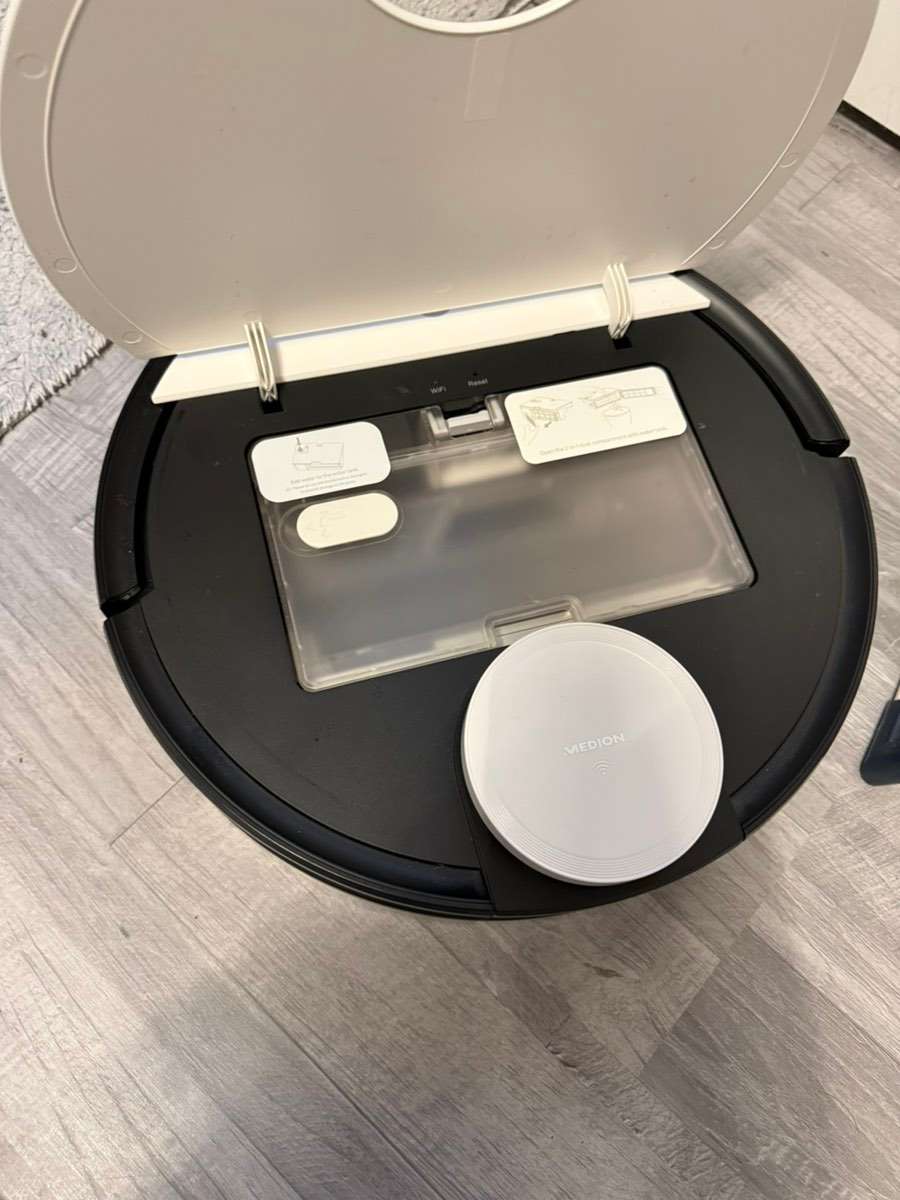 Medion Saug und Wischroboter Ladestation ganz neu gekauft mit Rechnung Staubsauger - leutet auf aber wir schaffen es nicht zu verbinden mit App Keine Kratzer oder Beschädigungen am Gerät keine Garantie