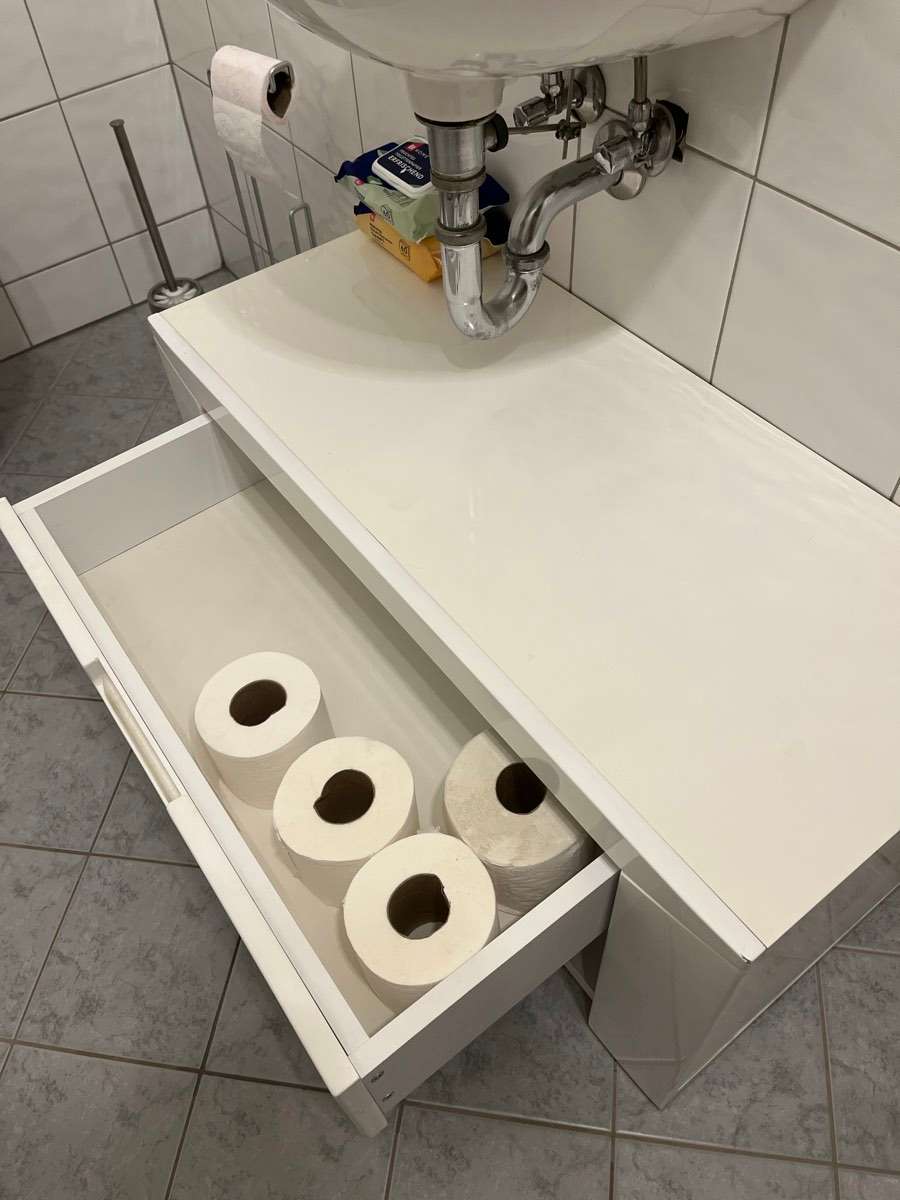 Verschenke dieses Kästchen, geeignet für WC oder Badezimmer. Farbe: weiß/ beige Zustand: 1A Maße: 85x37,5x43 (LxBxH) Nur Selbstabholung