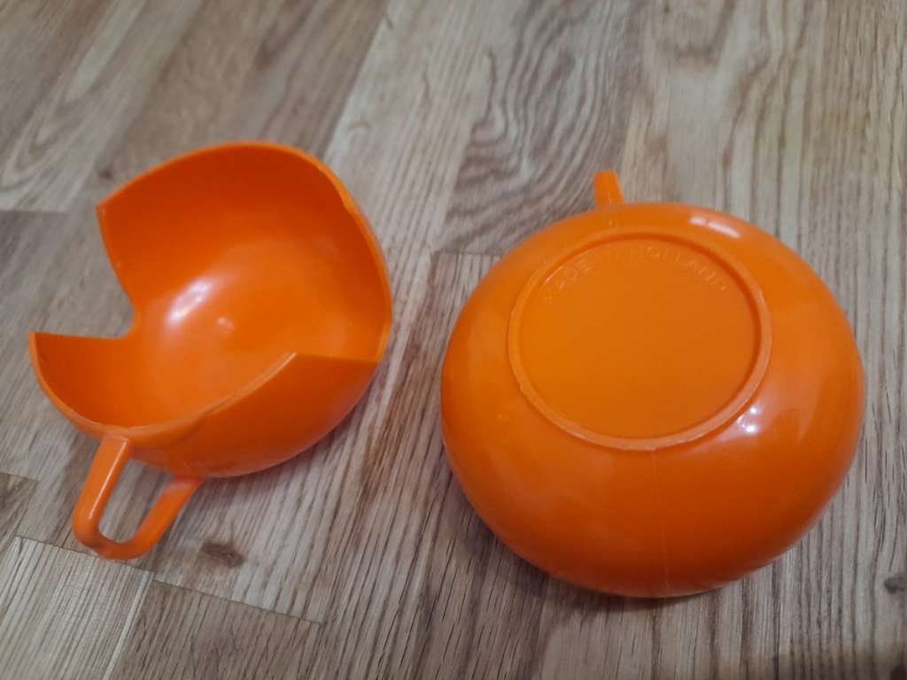 2 Stück Retro 1970er Glashalter orange Kunststoff