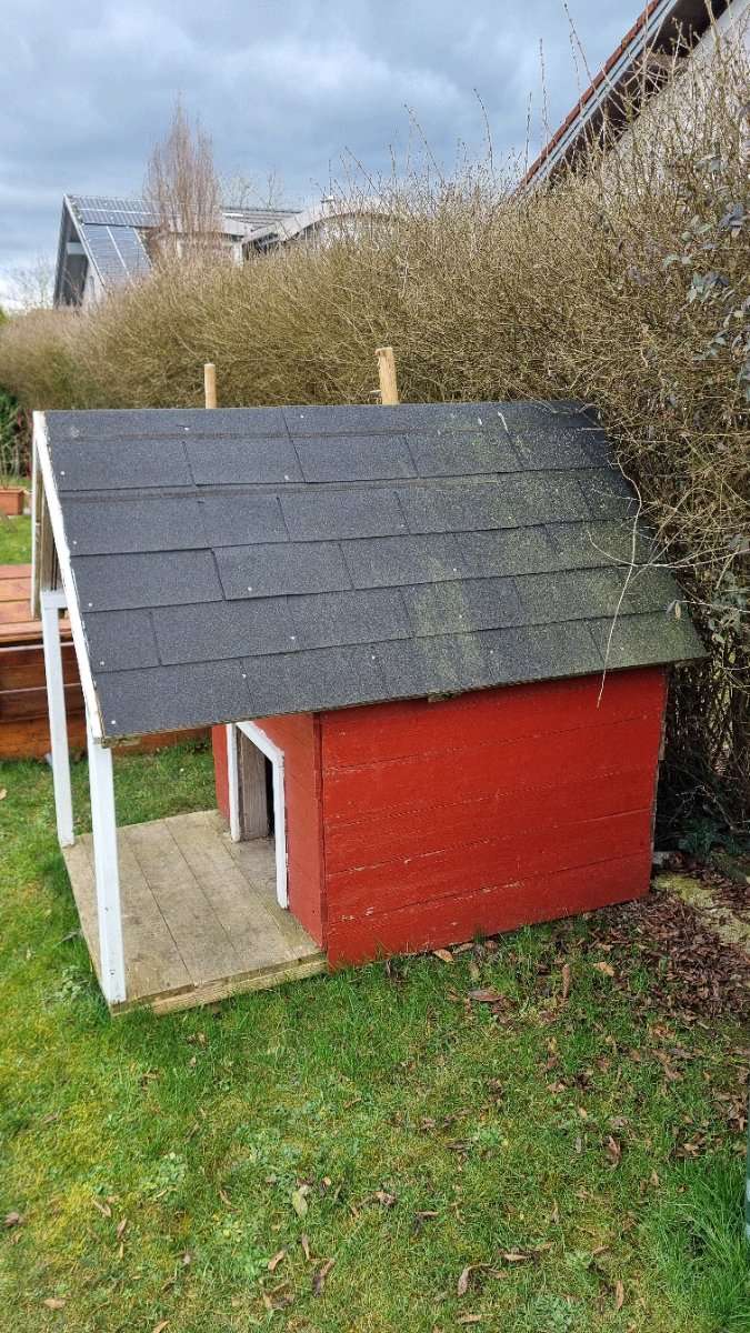 Wir geben unsere Hundehütte her, da sie nie von unserem Hund genutzt wurde. Ich habe sie selbst gebaut, die Hütte ist 3 Jahre alt und nicht isoliert. Maße ohne Dachüberstand 105x105x150 = BxTxH, Maße inkl. Dachüberstand: 160x105x150. Nur Selbstabholung,...