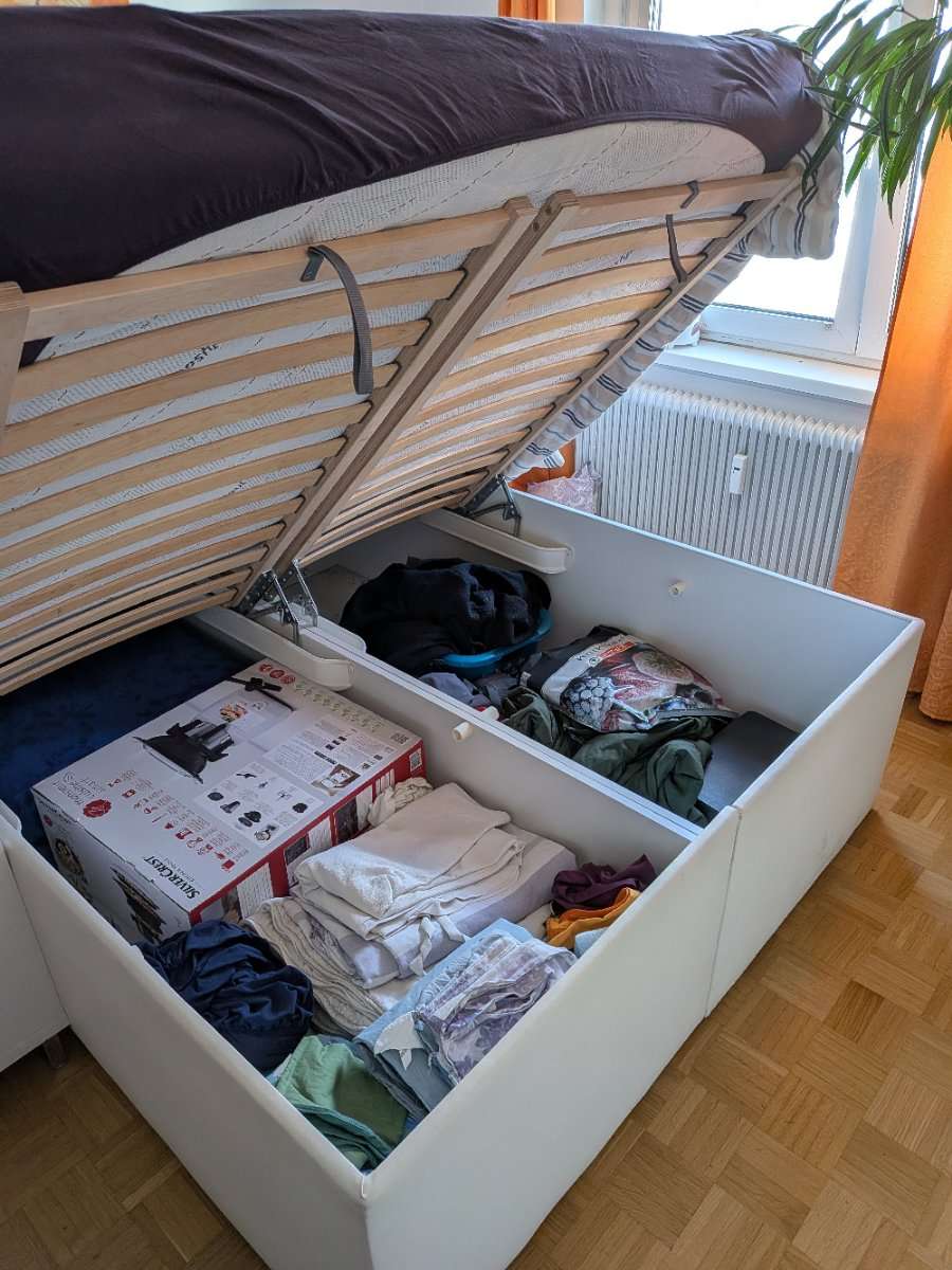 Bettgestell 160x200 mit viel Stauraum ohne Matratze zu verschenken Der blaue Fleck geht nicht mehr weg Am 30. oder 31.3. zum Abholen